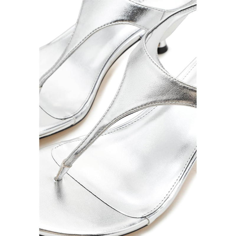 - Adjustable ankle strap with buckle closure; hidden elastic inset.