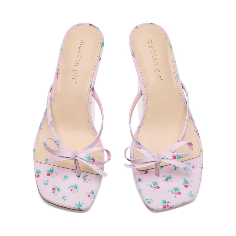 - The Madden Girl Charlotte is a kitten heel favorite, featuring a squared toe and toe thong closure with a stylish bow motif.