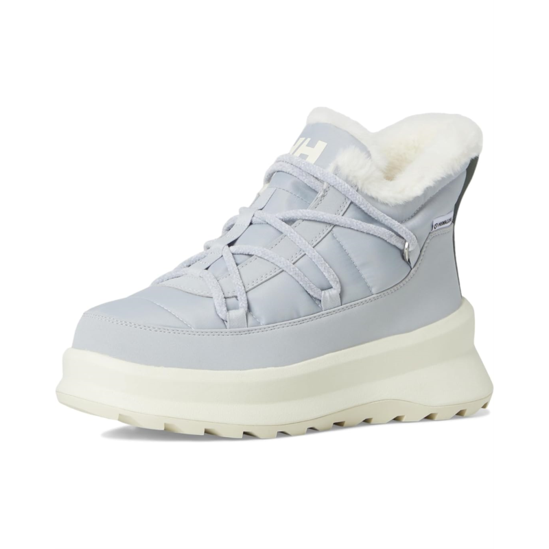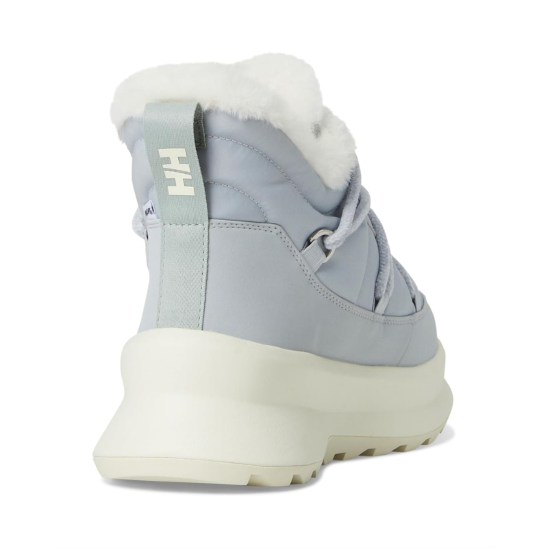 - The Helly Hansen Bluesky boots are ankle-high boots that are made of faux fur for a luxurious look and feel. Their 400 grams of Primaloft insulation and 100% recycled insulated lining keep your feet warm and toasty. These lace-up boots are designed with a 30% recycled EVA midsole, 100% recycled lace, and 100% recycled polyester webbing. Their HH comfort insole offers added comfort. More than 60% of the upper is made of recycled materials. Their PFC-free DWR finish repels water. These boots are equipped with HH Pro Guard, HH Power-Stride, and HH Max-Grip technologies, offering comfort and stability.
