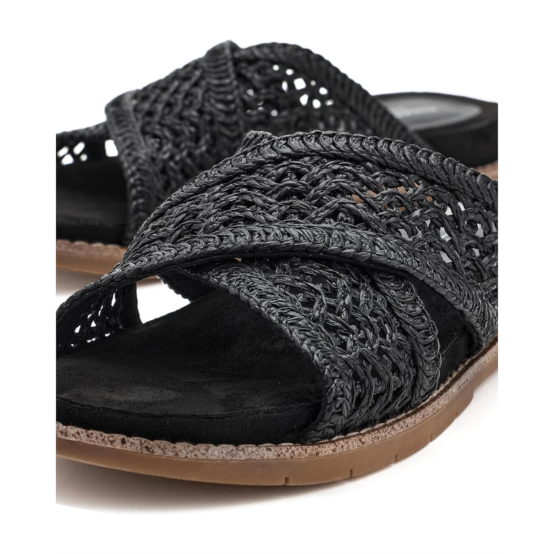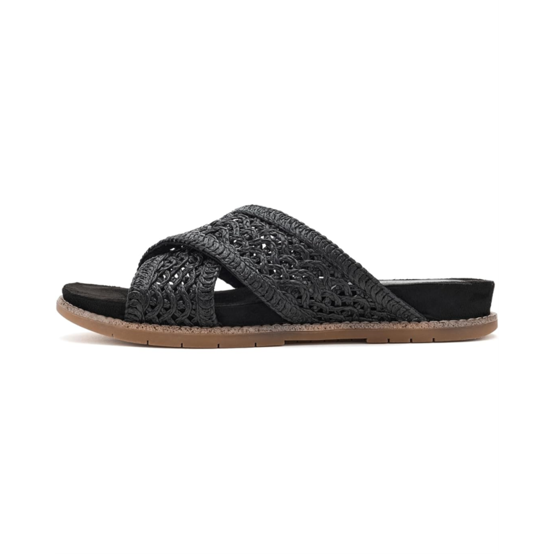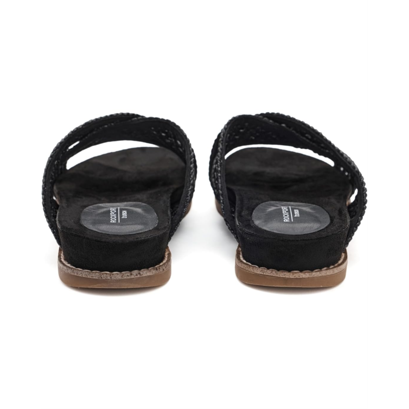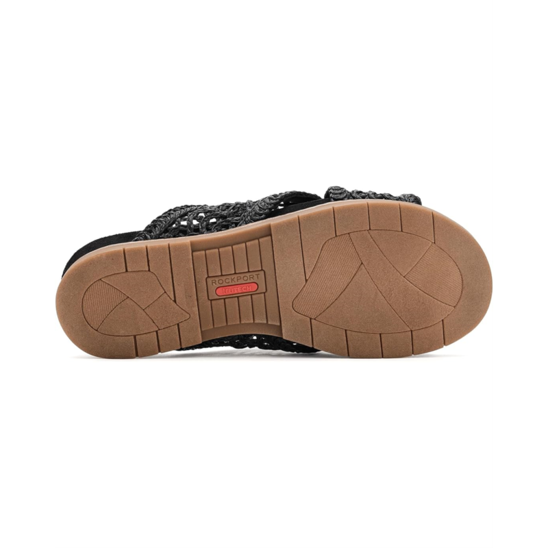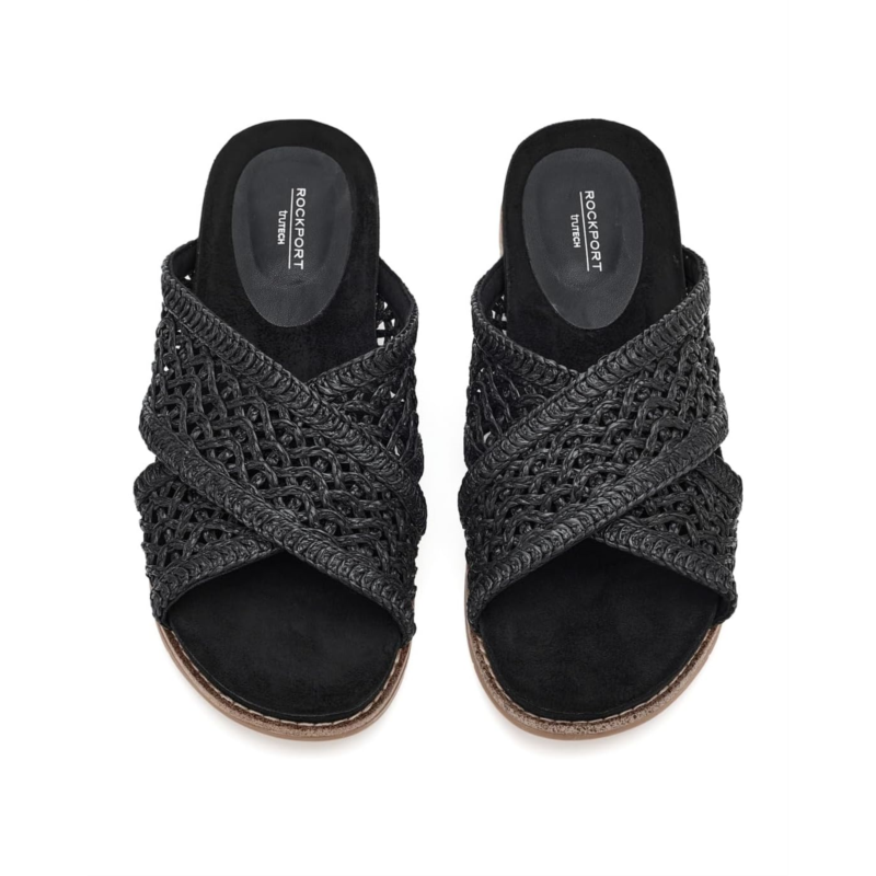 - Simplicity and comfort blend together to bring you the Rockport Zora sandals. These casual sandals feature a slip-on silhouette, criss-cross straps, and woven detailing. They are made of a polypropylene upper, a polyurethane insole, and a polyester lining. These slide sandals feature trutech technology for lightweight shock absorption. The lightweight shock-absorbing foam provides extra underfoot cushion and shock absorbency in the heel area. These flat sandals will keep you looking fashionable all day.