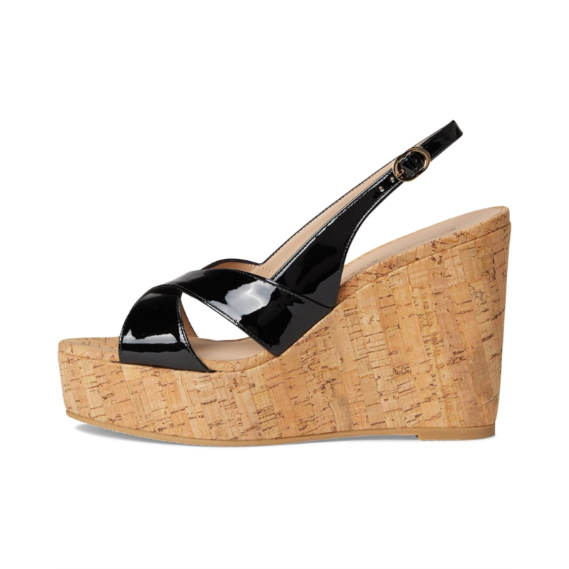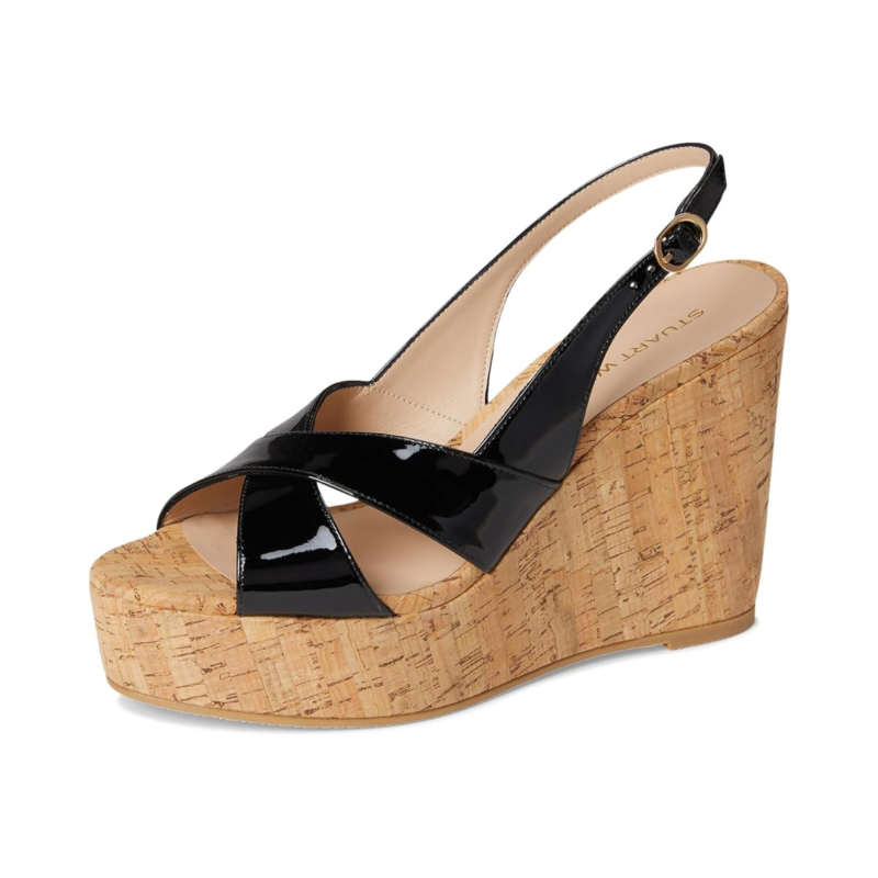 - Sparkle n life wearing the Stuart Weitzman Dayna Slingback Wedge. Crafted from leather upper, leather and cork lining, and leather insole, this pair of sandals features open round toe, crisscross strap detailing at vamp, adjustable slingback strap with buckle detailing, wedge heel, and brand detailing on the footbed.