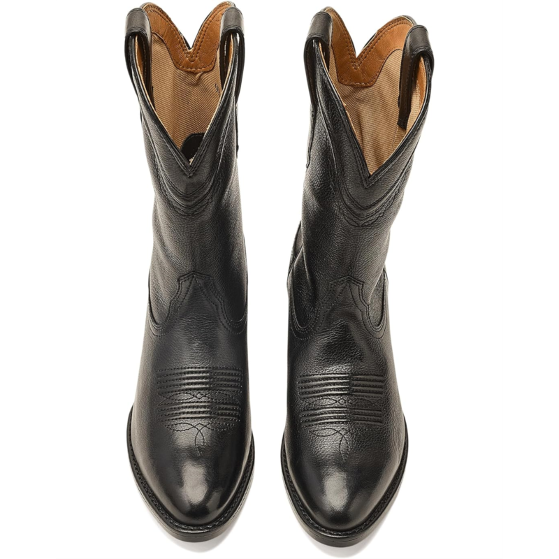 - The Ariat Grayson boots are crafted for those who love classic charm with a contemporary edge. Designed with a premium full-grain leather upper, lining, and insole, these boots deliver luxurious durability and a soft, comfortable feel with every step. The elegant four-row collar stitch pattern and leather-covered cording detail on the shaft add authentic Western flair, while the mid-calf silhouette and block heel create a flattering, versatile look. Featuring an easy pull-on design, they slip on effortlessly for busy days or stylish evenings out. Inside, a removable comfort insole offers customizable cushioning and support for long-lasting wear. Built with a single stitch welt and Ariats lightweight, flexible Bantamweight rubber outsole, these boots provide exceptional durability, traction, and lightweight performance.