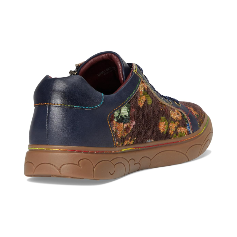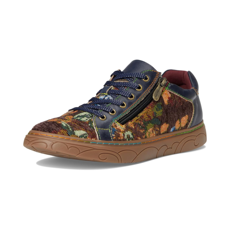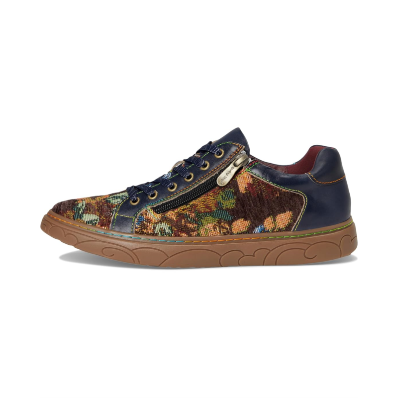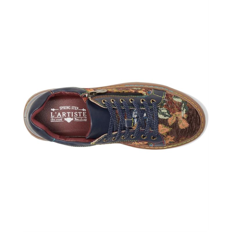 - Step into boho-chic brilliance styling the LArtiste by Spring Step Danli-fab, a sneaker that fuses artistry with everyday comfort. Crafted with a luxe blend of leather and tapestry textile uppers, this statement shoe brings vintage charm into modern fashion. The leather lining and insole offer breathable comfort, while the durable synthetic outsole supports your every step with ease. Featuring both lace-up and side zipper closures, this design ensures a customizable fit with effortless on-and-off convenience. What makes it truly unforgettable? The signature rainbow stitching, a hallmark of artisanal craftsmanship, adds a playful pop of color to your stride.