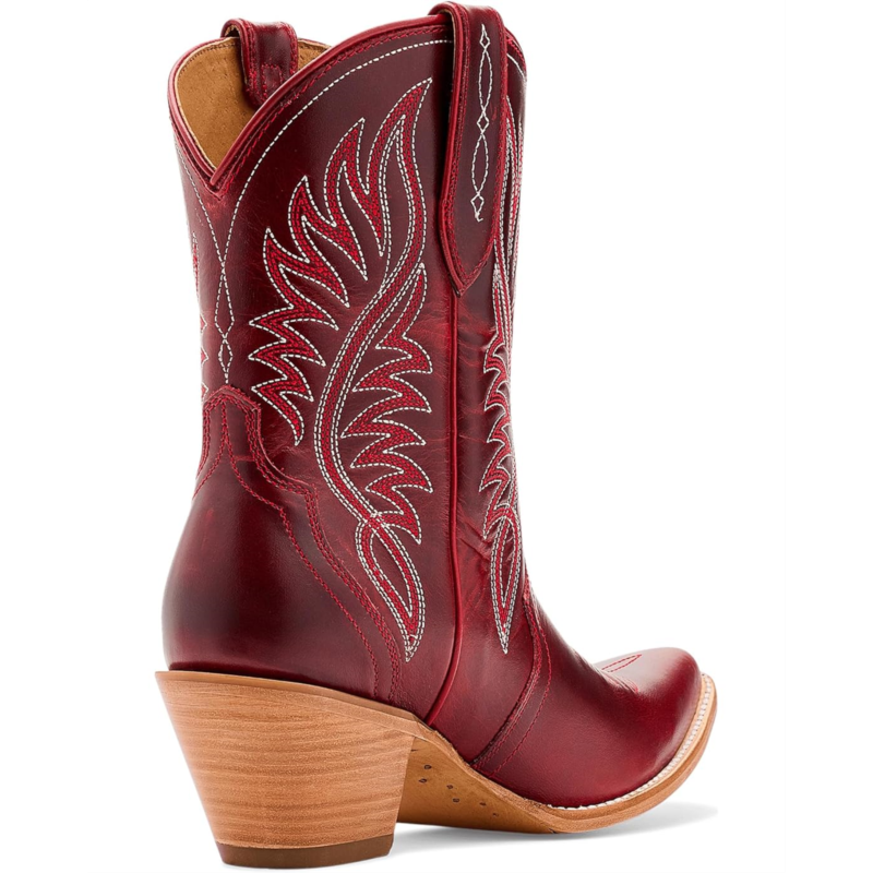 - The Ariat Julietta boots are calf-high boots featuring an allover animal print for an eye-catching appeal. These heeled boots are made of a non-removable comfort leather insole and leather lining. Their premium, full-grain leather upper is styled with a four-row stitch pattern, side pull handles, and a single stitch welt. These printed boots make a stylish addition to your footwear collection.