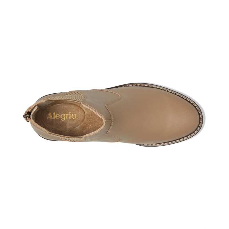 - Experience Alegria comfort redefined wearing Alegria Meadow-your go-to Chelsea boot that effortlessly combines fashion and function. With a sleek leather upper and ankle-high design, this boot offers a polished look and a touch of heel for added elegance. The stain-resistant leather ensures enduring style, while the zippered side closure and double elastic gores provide a snug, adjustable fit. Enjoy superior comfort with the removable microsuede Signature Arch footbed and stay steady on your feet with the slip-resistant polyurethane outsole.