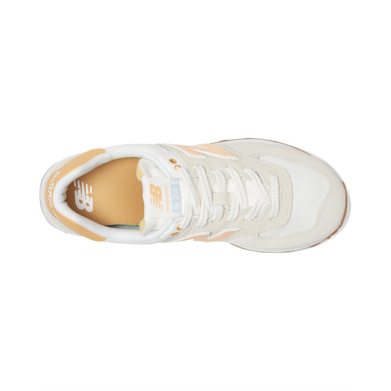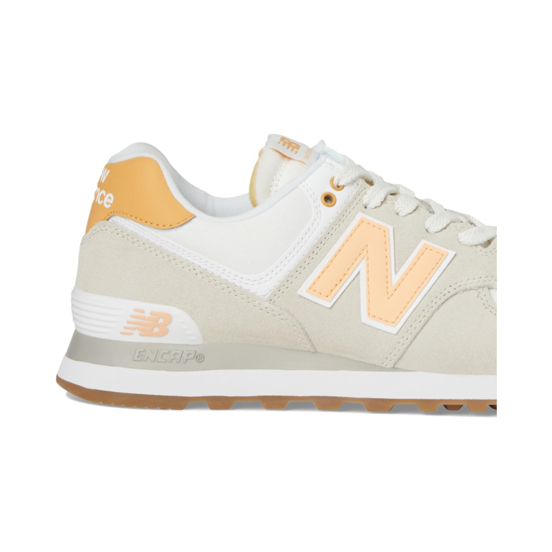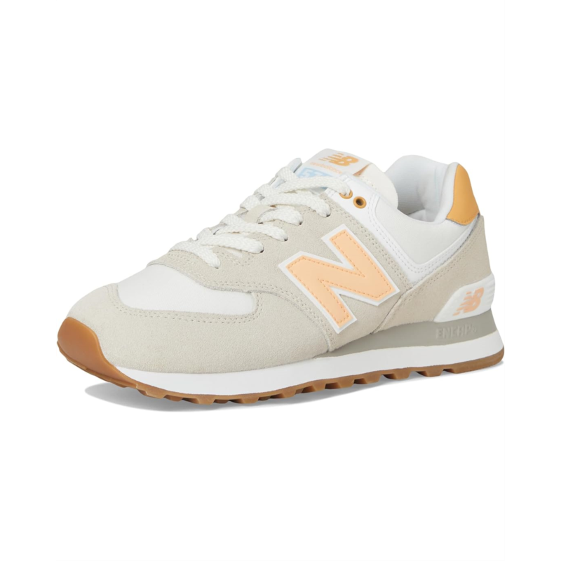 - Take your sporty style to a new level wearing the New Balance Classics 574 Sneakers, crafted in a sleek street style silhouette with lace-up closure for easy adjustability. The low-top sneakers come with a suede or mesh upper with signature New Balance logo detail on the side panel, textile lining, a removable padded footbed, and a cushioned midsole for ultimate comfort.