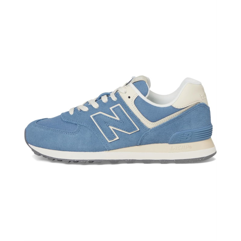 - Take your sporty style to a new level wearing the New Balance Classics 574 Sneakers, crafted in a sleek street style silhouette with lace-up closure for easy adjustability. The low-top sneakers come with a suede or mesh upper with signature New Balance logo detail on the side panel, textile lining, a removable padded footbed, and a cushioned midsole for ultimate comfort.