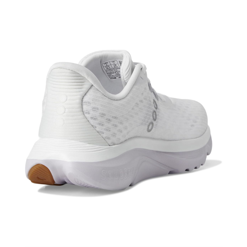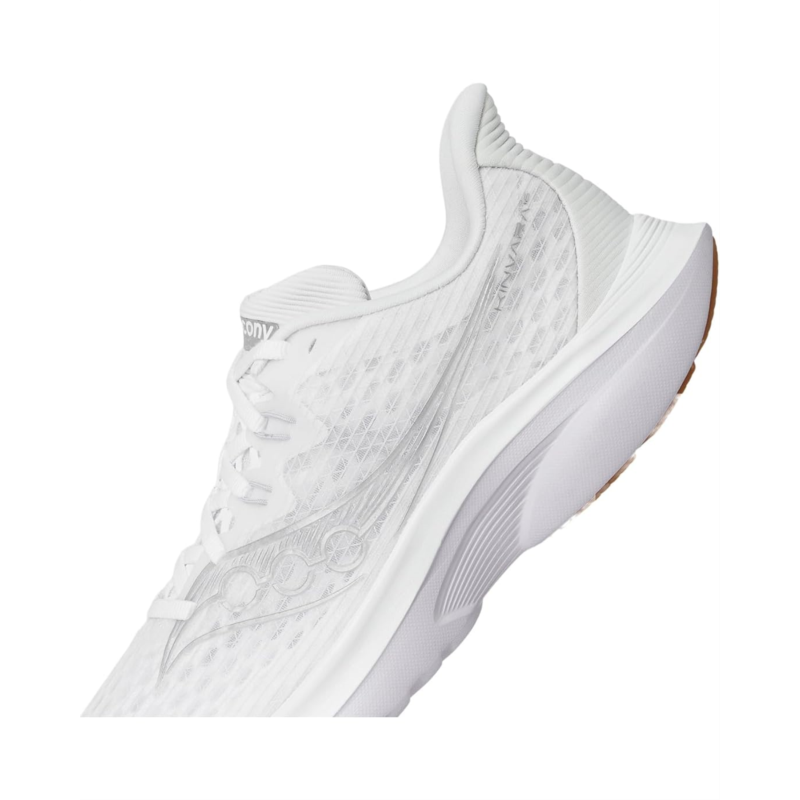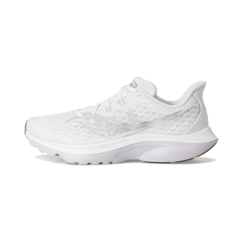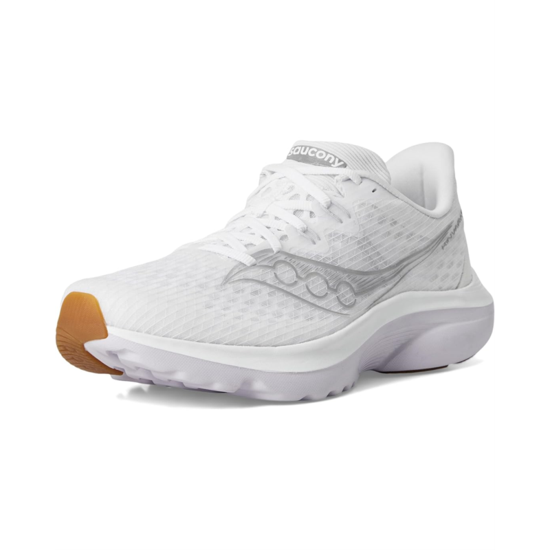 - Walk your way with ultimate comfort and a sporty style wearing the Saucony Kinvara 16, a trainer built for an ultralight, flexible and fast ride. Upgraded blend of PWRRUN, with more energy return and tougher construction against daily wear. The new geometry features a lower sidewall and straighter medial midfoot, designed for a smoother transition and added comfort as you pick up the pace. The EVA insole with new SRS sockliner offers step-in comfort you cant deny, while the breathable and lightweight upper mesh with a 3D molded heel cup offers a comfortable and secure heel fit. The lace-up closure ensures a secure fit on the go.