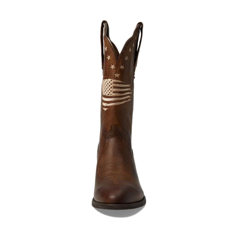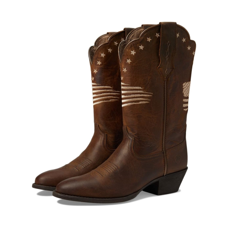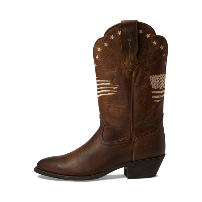 - Fully embossed with leather construction, the Ariat Heritage R Toe Liberty StretchFit Western Boot showcases a classic style with its polished look and calf-length silhouette.