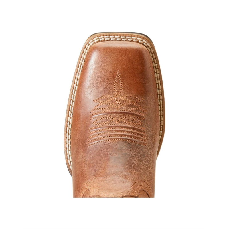 - No matter how uneven the terrains are, with the Ariat Oak Grove Western Boot you are always ready for outdoor activities. The boots are engineered with a leather upper, synthetic lining and comfortable cushioning footbed. These feature a squared toe shape, curved top, pull straps, and an attractive design on the shaft.