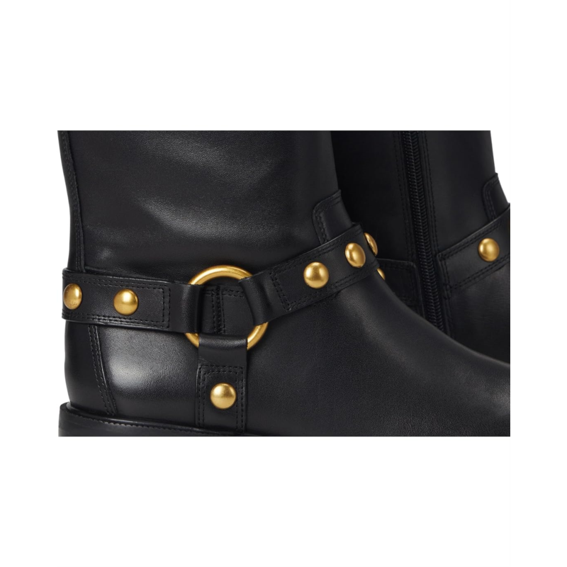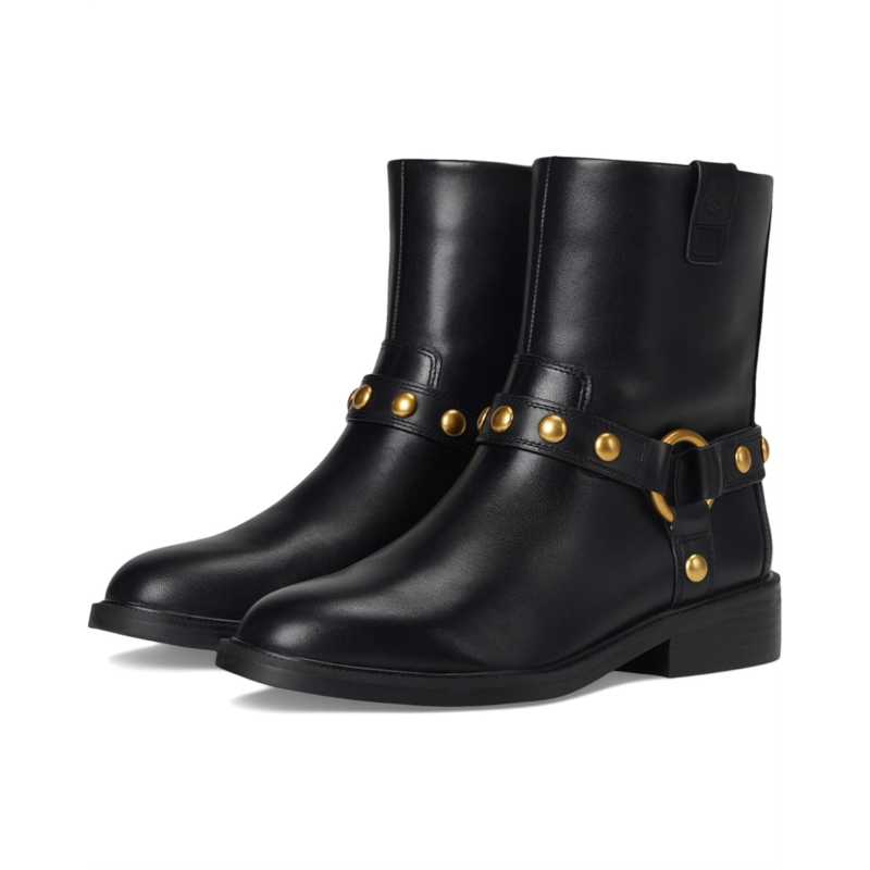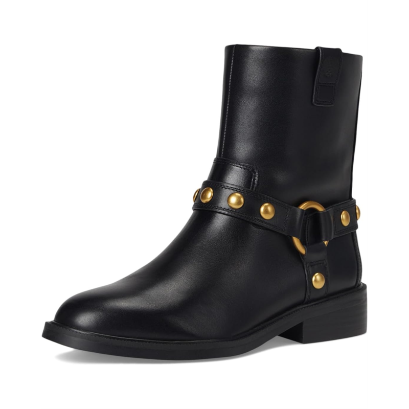- Make a fierce statement with the Vince Camuto Amais Biker Boots. Featuring a bold harness strap with shiny studs and ring accents, this moto boot blends edgy attitude with effortless style. The low stacked heel, rounded toe and padded footbed offer all-day comfort, while the striking detail ensures you stand out wherever you go. They have an inside zip for easy entry. Pair them with denim or a leather jacket for the ultimate chic look.