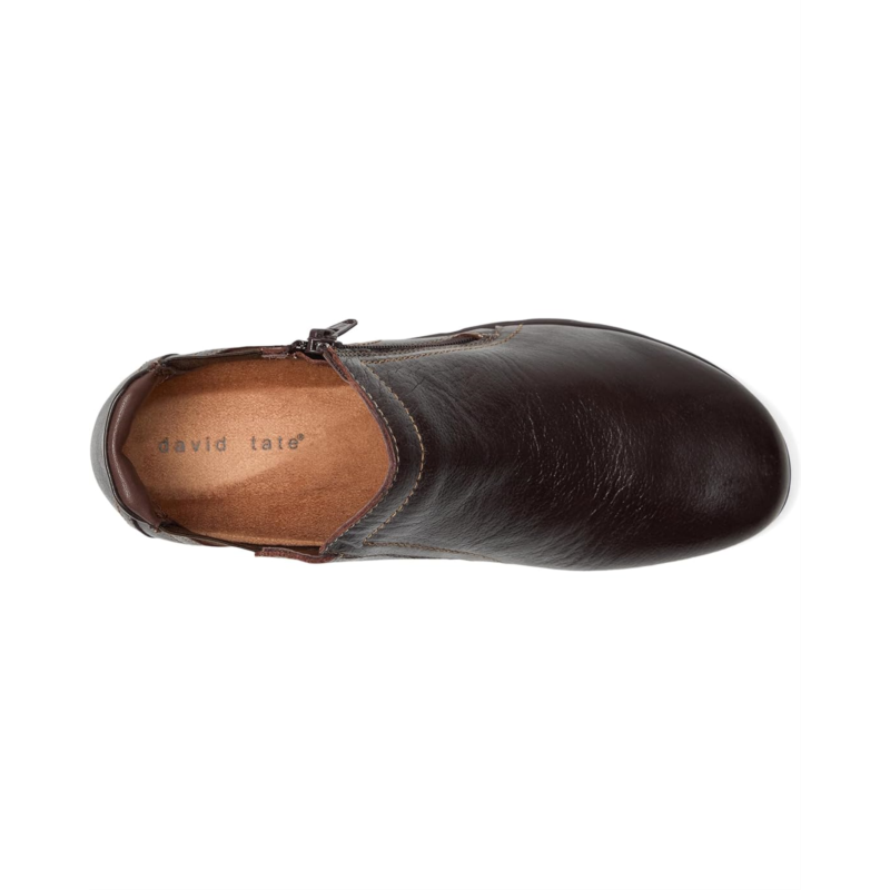 - The David Tate Popular boots feature a soft pebble grain leather upper and a fabric lining. An elastic side panel and a zippered side closure make these ankle boots easy to slip on and off. The removable contoured rubber insole of these boots provides support and proper alignment of the foot. Match your different outfits and styles with these heeled boots.