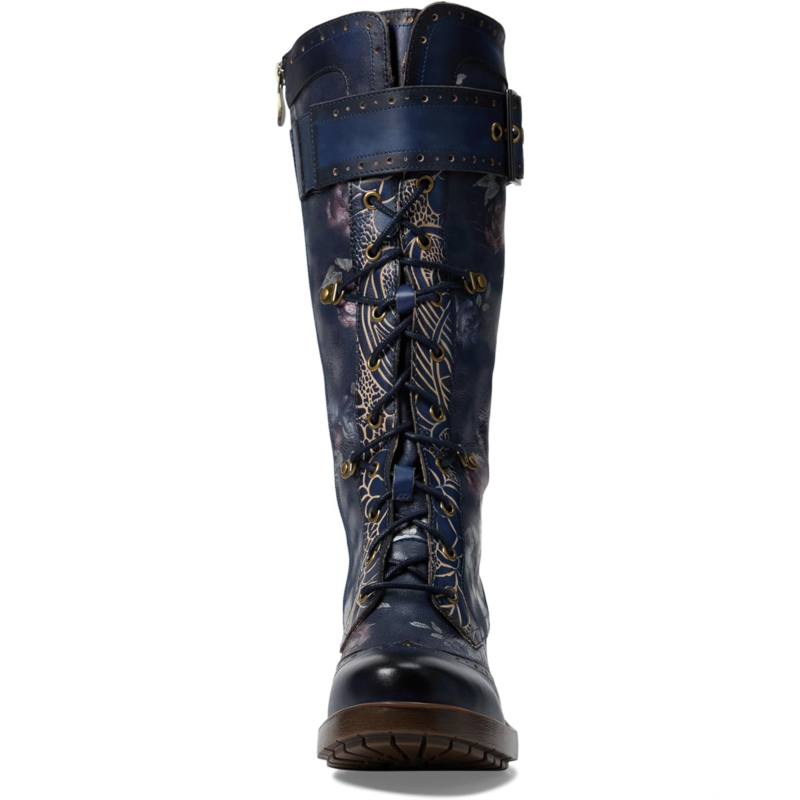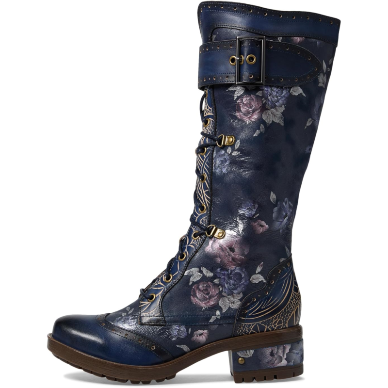 - Made for the fashionista whos just as comfortable downtown as uptown, the LArtiste by Spring Step KISHA-BOSS boot melds comfort and style. Throw them on as you head out the door and know Youll make an entrance wherever you go. The lace-up design with lace keepers allow for customized fit and the inside zipper allows easy on/off. The stretch gore on hook and loop strap provides flexible comfort and the rubber lug outsole adds traction and durability. The mid-calf boots are crafted with a leather upper, velvet lining, and a faux leather insole. The almond toe shape and block heel detail offers exceptional style.