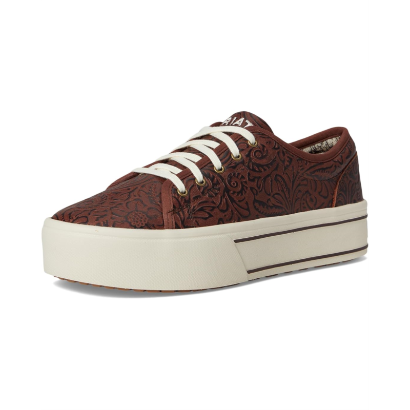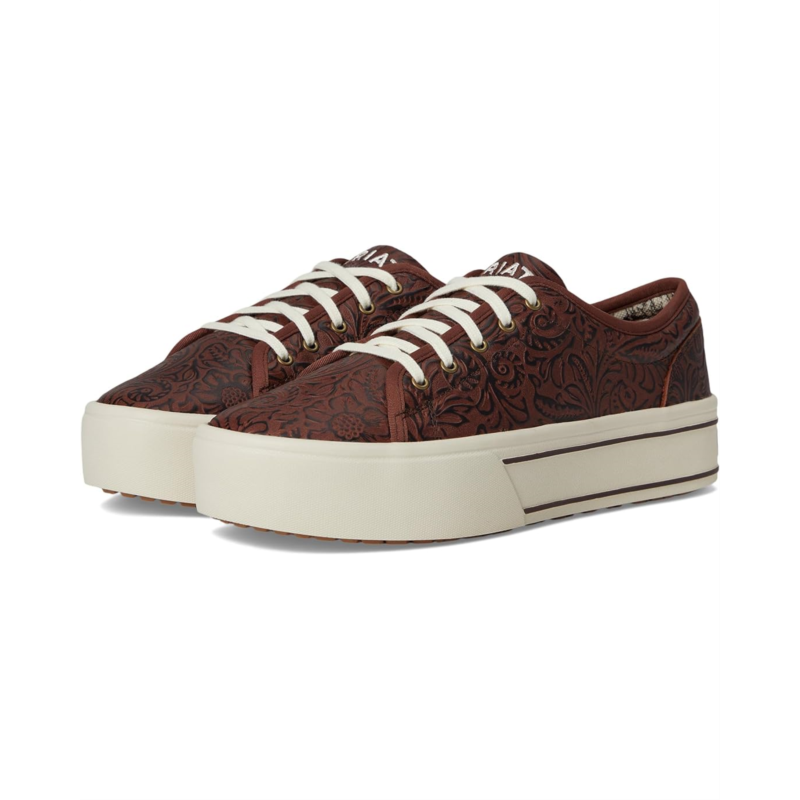 - Take style and functionality to the next level wearing Ariat Skylar Sneakers. Crafted with a leather upper, polyester lining, and a rubber insole, the round-toe sneakers enhance comfort with every step you take. The all-over leopard print adds an exquisite touch, and the lace-up closure ensures a secure fit on the go.