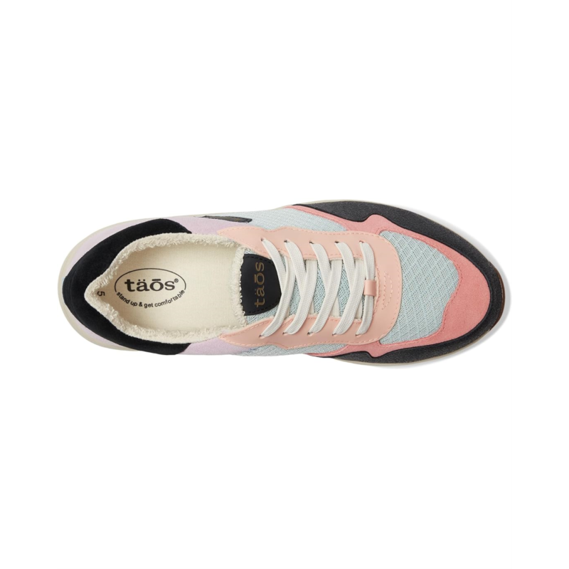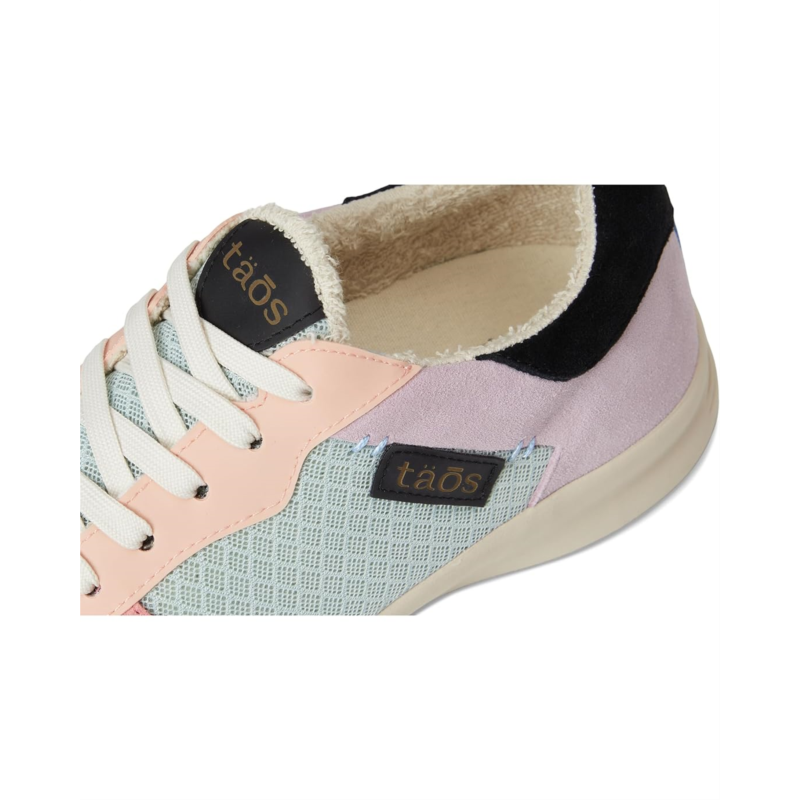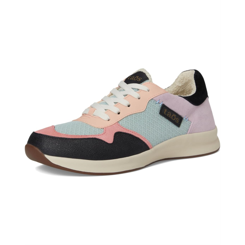 - Explore the newest addition to our active-inspired sneaker collection! Made with premium suede, lightweight mesh, and nylon uppers, Taos Footwear Detour bold design color-blocks and soft, moisture-absorbing terry cloth lining provide a spa-like feel with a sporty look. A rubber guard on the toe adds durability and completes the look. Exceptional arch and metatarsal support in this removable polyurethane footbed is the perfect foundation for miles of walking. The EVA midsole makes these ultra lightweight and the honeycomb rubber outsole offers flexibility and durability wherever the road takes you. If you love the Direction, give Detour a try with its comfy structured back!