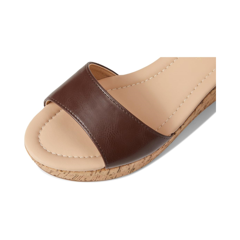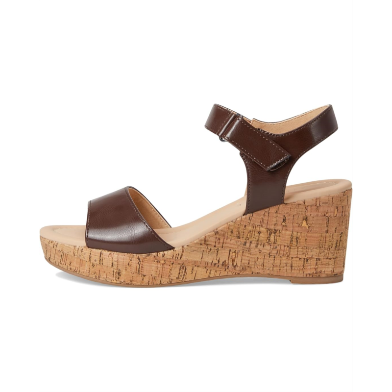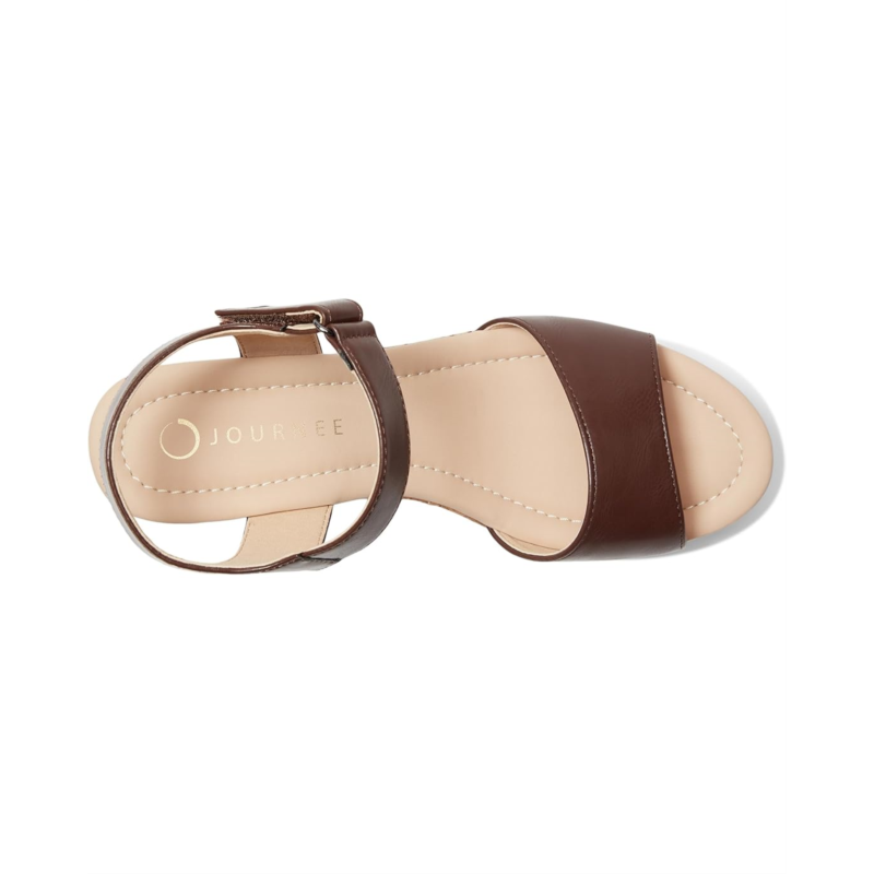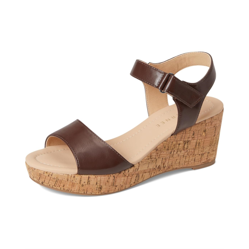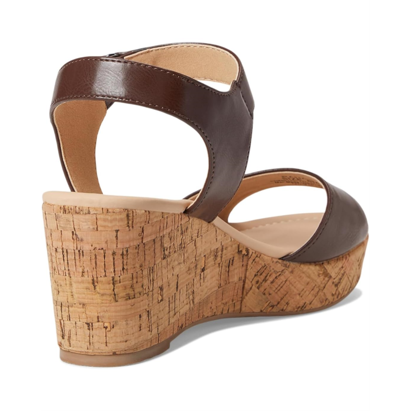 - The Journee Collection Ranae Cork Wedge Sandal blends natural charm with modern style, featuring a sturdy cork wedge heel that provides comfortable height. Its three-fourth, hook-and-loop ankle strap adds a secure fit and complements the open round toe silhouette, creating an airy, summery look. Perfect for casual and dressy occasions alike, this sandal offers both style and support with its cushioned footbed and faux leather upper.