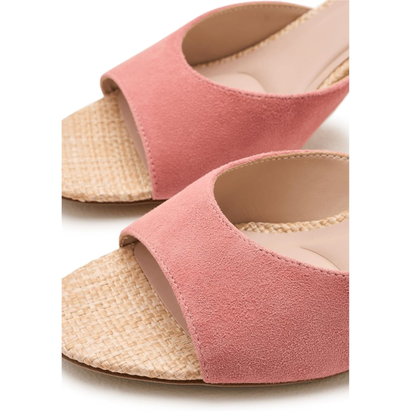 - This elegant Pelle Moda Unia 4 slide sandal offers a refined, warm-weather silhouette with a modern, feminine feel. The softly structured suede upper gently hugs the foot, creating a clean, understated profile thats easy to slip on and wear. A cushioned insole adds comfort, while the sculpted heel is wrapped in a woven, natural texture that brings subtle contrast and artisanal character. The slim outsole and gently flared heel create a balanced, graceful shape that feels elevated yet approachable. Effortlessly chic, this design transitions seamlessly from casual daytime looks to polished evening styling.