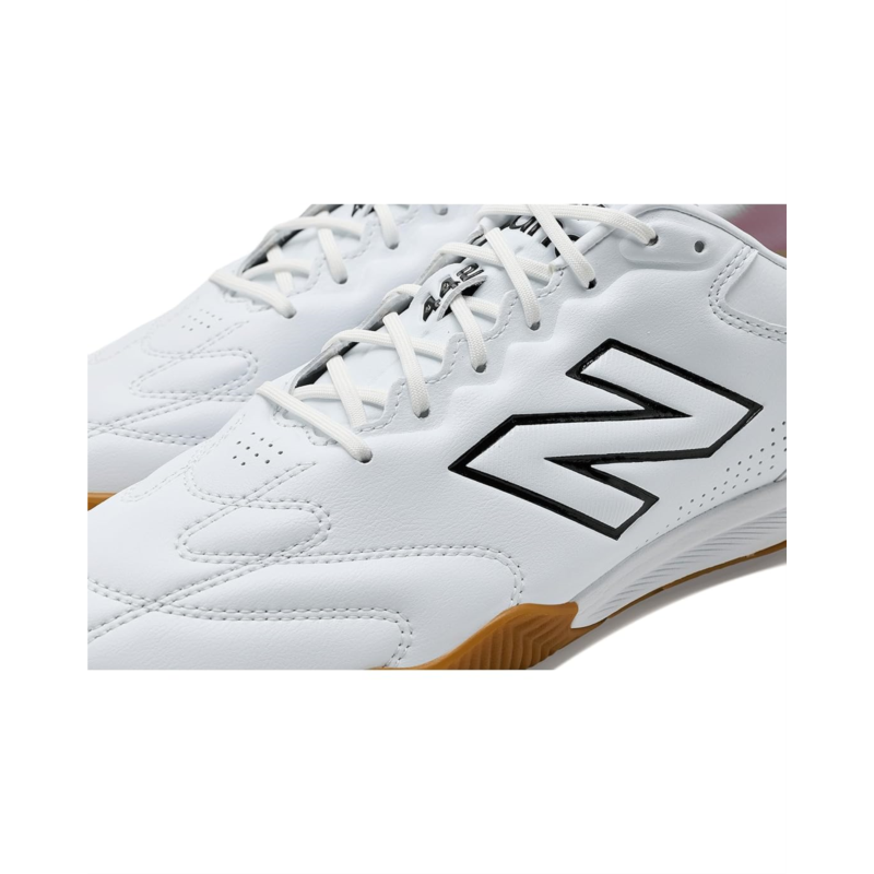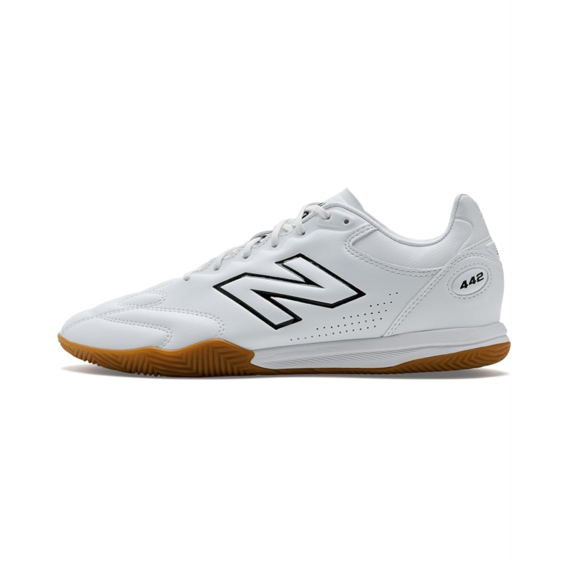 - Show off a sporty performance wearing the New Balance 442 Pro In V3 Soccer Cleats, built for performance and style, equally as wearable on and off the court. The re-imagined nubuck upper offers plush forefoot quilting. Classic U-throat collar & floating tongue provide a snug fit, while the lace-up closure ensures a secure fit. Responsive Fuelcell midsole offers premium comfort and propulsive feel. Compression Molded EVA insert provides lightweight underfoot comfort and cushioning.