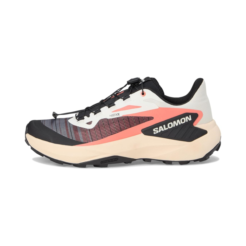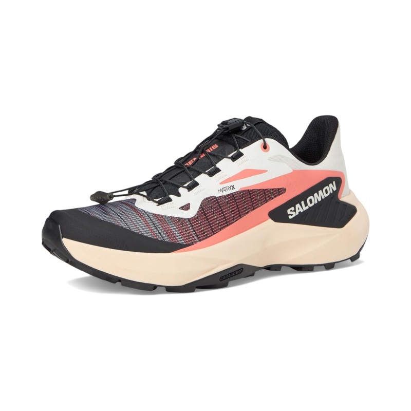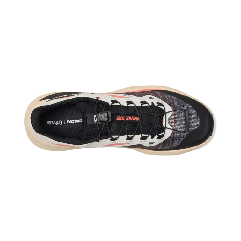 - Step into greatness wearing the Salomon Genesis. It is crafted from woven Matryx upper that effectively resists the elements of the trail, leather lining and leather insole. This pair of shoes features round toe, Energy Foam footbed with Active Chassis for balanced performance, lace detailing with bungee closure and brand detailing on the sides, tongue and footbed.