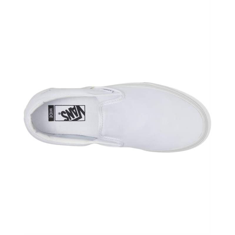 - Improve the speed and comfort of your feet wearing the Vans Classic Slip-On Wide sneakers. Featuring an easy slip-on style, these casual sneakers are made of a textile upper, insole, and lining. Their elastic side gore panels ensure easy on and off. These slip-on sneakers are styled with a brand label at the heel.