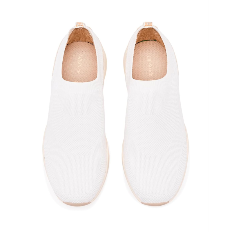 - LifeStride Upbeat sporty womens slip-on sneaker designed for easy, on-the-go wear with a low-top silhouette and modern knit fabric upper. Innovative BZEES Air Step technology with an ultra-lightweight feel, FreeFoam cushioning with arch support, and dynamic stretch fabrics. Strobel construction and ethylene-vinyl acetate outsole provide lightweight flexibility and a textured grip for traction on any surface. Slip-on fit with a rounded toe shape and pull tab at the heel ensures quick changes and a secure fit for busy days. Keep your womens slip-on sneakers looking fresh, simply machine wash on cold and air dry for convenient care.