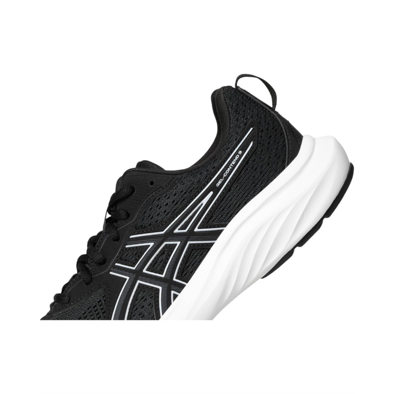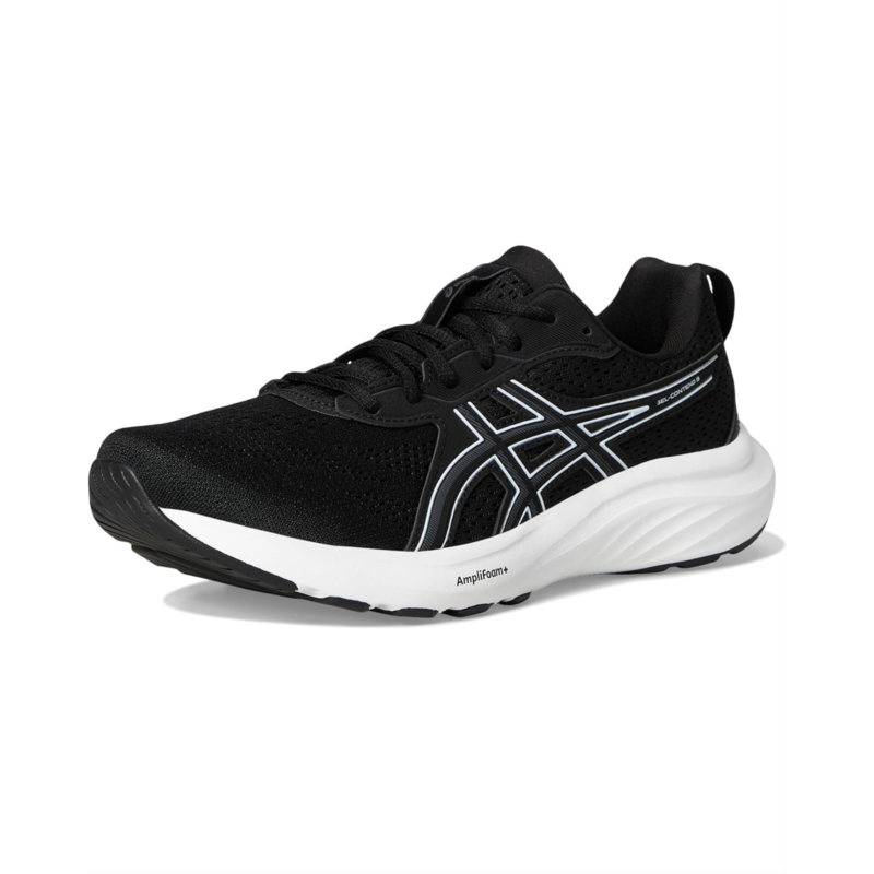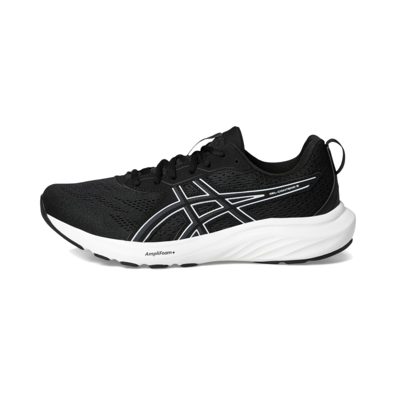 - The ASICS GEL-CONTEND running shoe provides good cushioning, support, and durability. An engineered mesh upper stretches with the foots natural motion and creates a comfortable fit. Meanwhile, the synthetic stitching on the overlays helps create a more supportive foothold. The midsole features GEL technology and AMPLIFOAM+ cushioning. These technologies help increase durability while creating a softer feel underfoot. Additionally, a TRUSSTIC support unit and wrap-up outsole improve stability while allowing your feet to move freely. This lets you change directions more confidently, particularly if youre moving side-to-side.