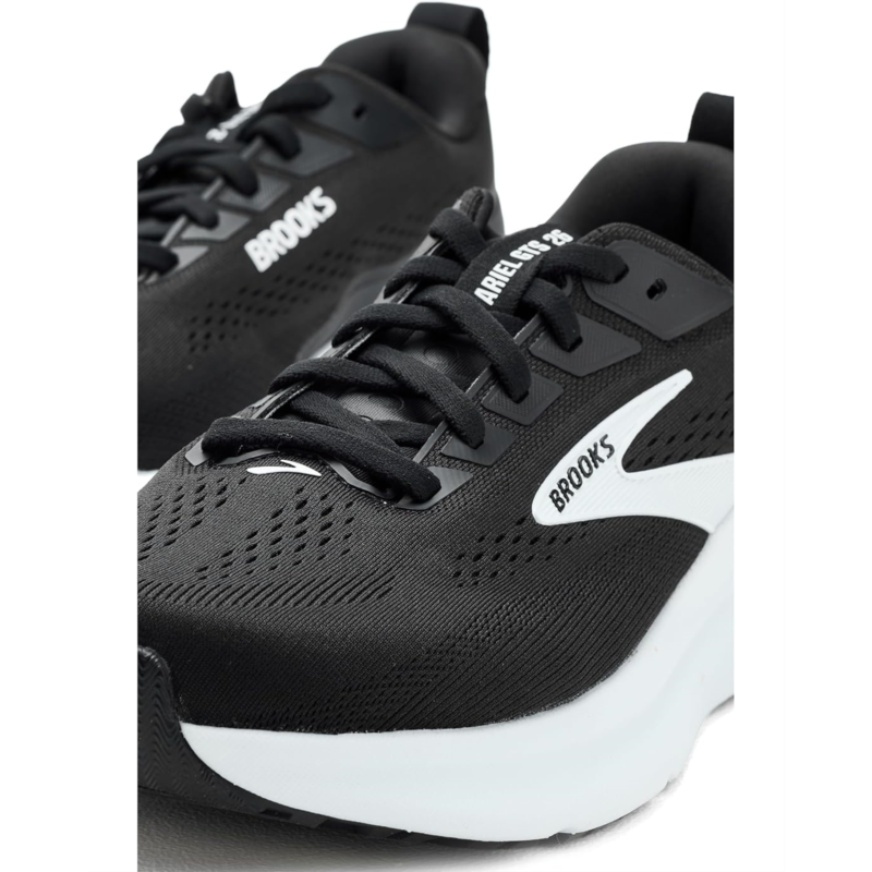 - Engineered for your strongest mile: The Brooks Ariel GTS 26 merges advanced support technology with an energized underfoot feel. Built with a breathable nylon upper and lining, it keeps your feet feeling fresh and supported throughout every stride. The lace-up closure ensures a secure, personalized fit, while the soft Ethylene Vinyl Acetate insole cushions each step with lightweight comfort. What truly sets this shoe apart is the innovative GuideRails support system, which helps keep excess movement in check so you can run naturally and confidently. Paired with nitrogen-infused DNA LOFT v3 cushioning, every mile feels softer, smoother, and incredibly responsive. Down below, the durable rubber outsole provides reliable traction for everyday training or long runs.