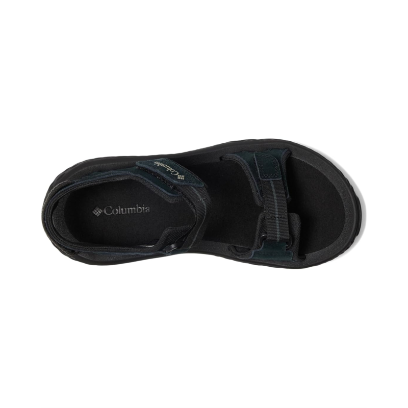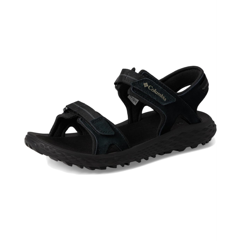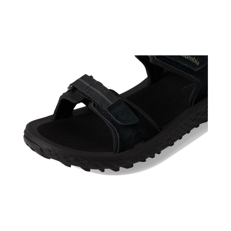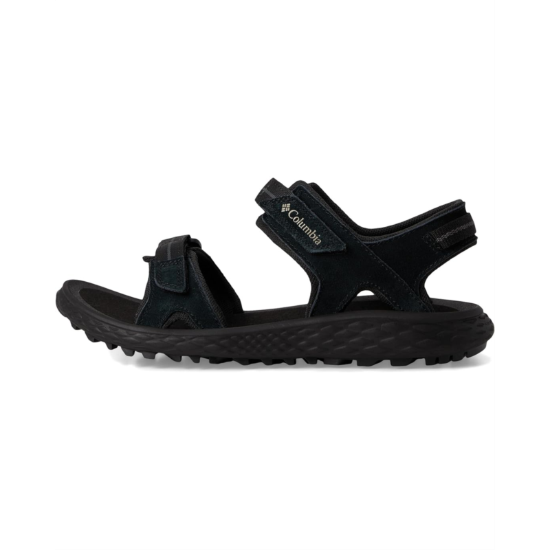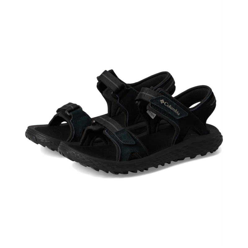 - Inspired by the shape of a pinecone, the Columbia Konos Hiker 2-Strap sandals are the ultimate sandals for your outdoor exploration. An engineered Omni-Max underfoot system delivers superior comfort and traction to tackle any terrain while providing stability to keep you progressing. The suede and synthetic leather upper with two hook-and-loop straps offers an adjustable fit. These slip-on sandals are made of a polyester insole, synthetic rubber lining, and a footbed with synthetic treatment. The Techlite midsole and a specially designed heel and midfoot aid in creating a stable platform while the flex grooves in the forefoot provide flexibility and better push-off. These leather sandals are designed with deflection domes in the forefoot and heel that reduce load impact for better comfort and rebound.