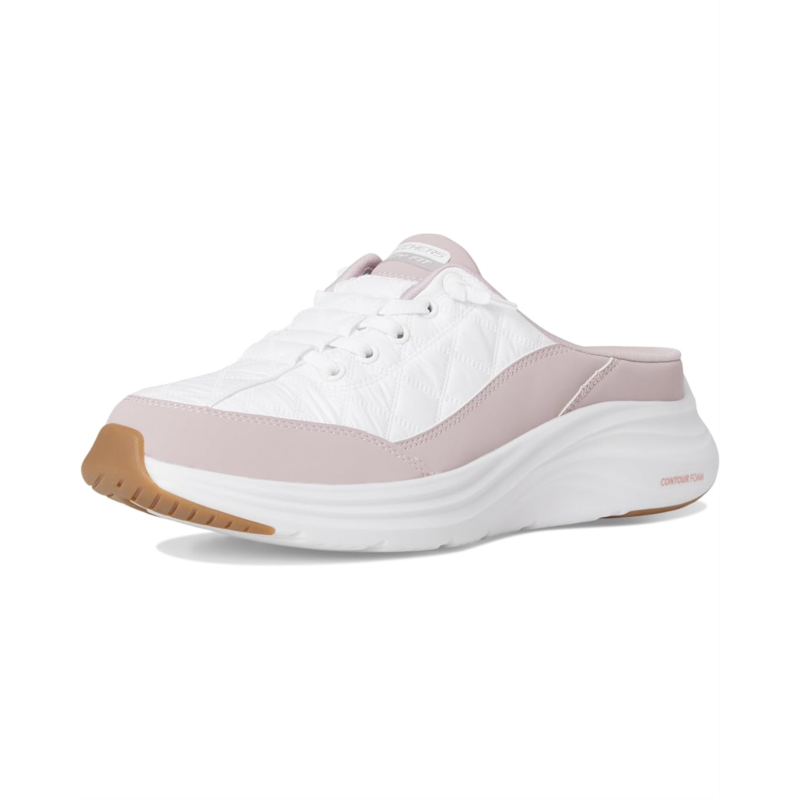 - Live in comfort and step out in style wearing Skechers Contour Foam - Cozy Fit. Designed for those who love the perfect blend of fashion and function, this slip-on sneaker offers a sleek lace design that gives a sporty touch while keeping convenience front and center. Featuring an innovative Air-Cooled Memory Foam comfort insole and ultra-lightweight vapor foam cushioning, every step feels soft, breathable, and endlessly supportive. The integrated Slip-Ins heel panel makes getting in and out a breeze, no bending, no fuss. Built with a durable rubber upper, insole, and outsole, this style is made to last, while the vegan construction offers an eco-friendly choice you can feel good about.