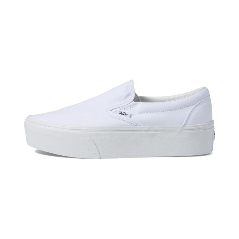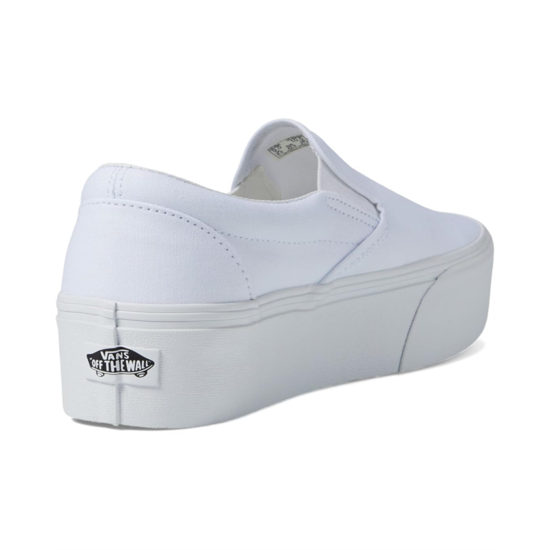 - The Vans Classic Slip-On Stackform shoe features a round toe design and cushioned insoles for all-day comfort. Brand detailing appears on the heel counter, while the synthetic outsole delivers durability and traction. With its platform heel and signature Vans attitude, the slip-on footwear brings old-school skater style into a modern, trend-forward look.