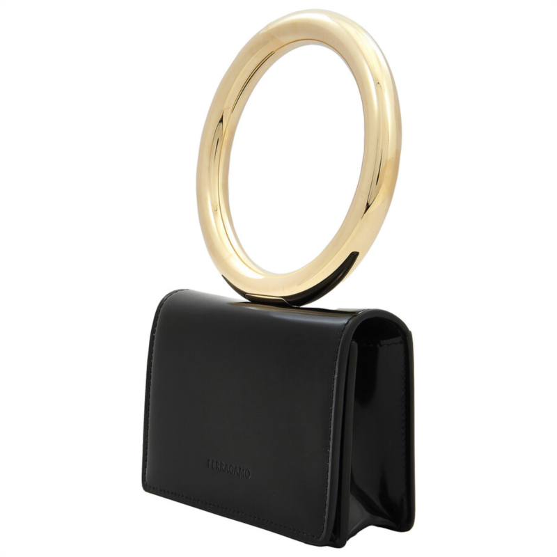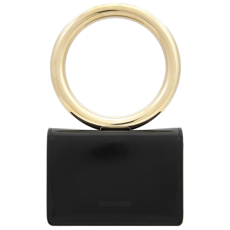 Salvatore Ferragamo Ladies Card Case. SKU: 220427 760651. Color: Black. Size: H: 19. 0cm x 7. 4. L: 11. 0cm x 4. 3. W: 2. 5cm x 0. 9. Salvatore Ferragamo Micro Pouch. This micro pouch features a gold-tone hardware, It has a foldover top with a press-stud fastening, a single circular top handle, and a main compartment. 100% Calfskin. Made in Italy. .