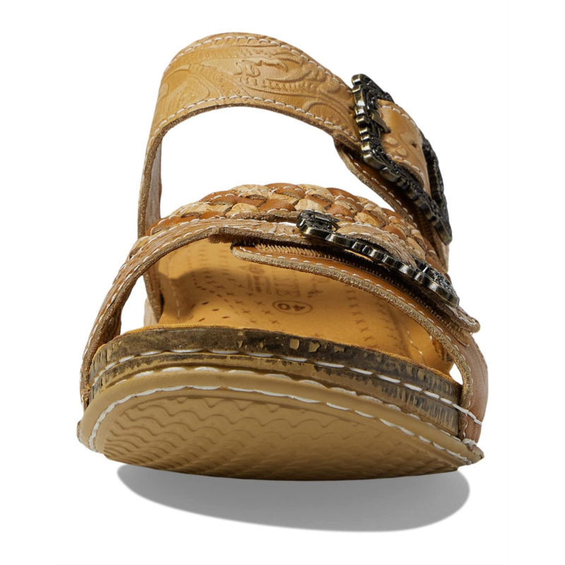 - Don the marvellous design of the LArtiste by Spring Step Astra sandals designed to feature the raw botanical inspired and hand-painted patterns on its straps.