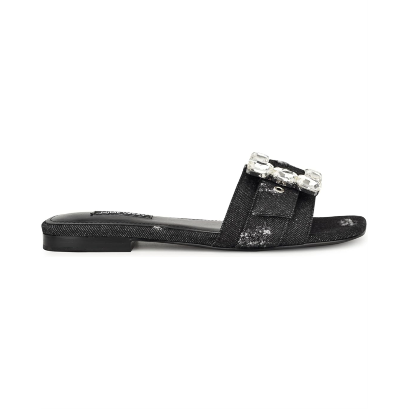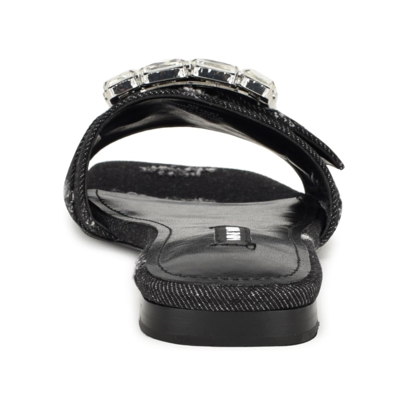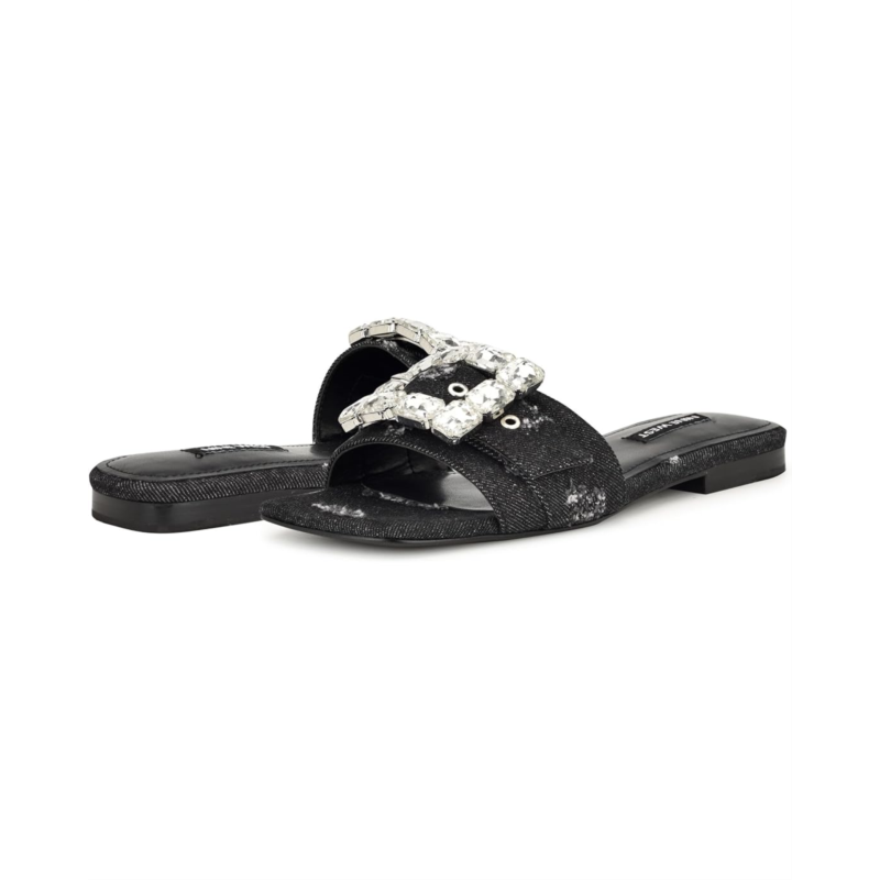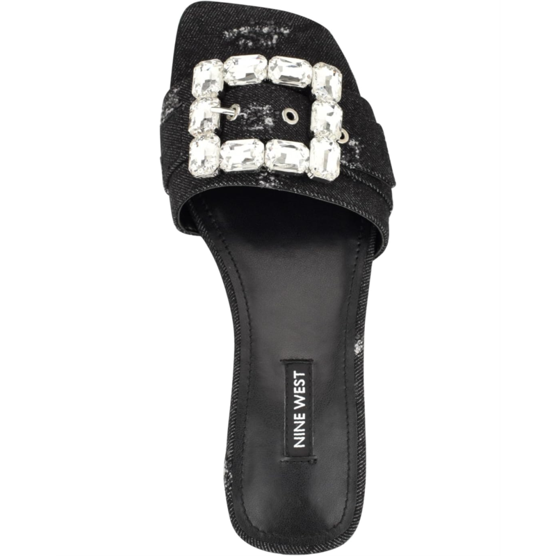 - Add a pop of sparkle to your everyday style while enjoying a comfortable walk every time you step out in the Nine West MATTER Sandals. Featuring an easy slip-on style with an open square toe, the shoes come with a textile or synthetic upper showcasing a striking buckle and stone detailing, a synthetic lining, and a lightly padded insole.
