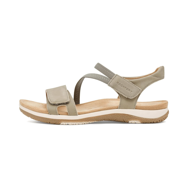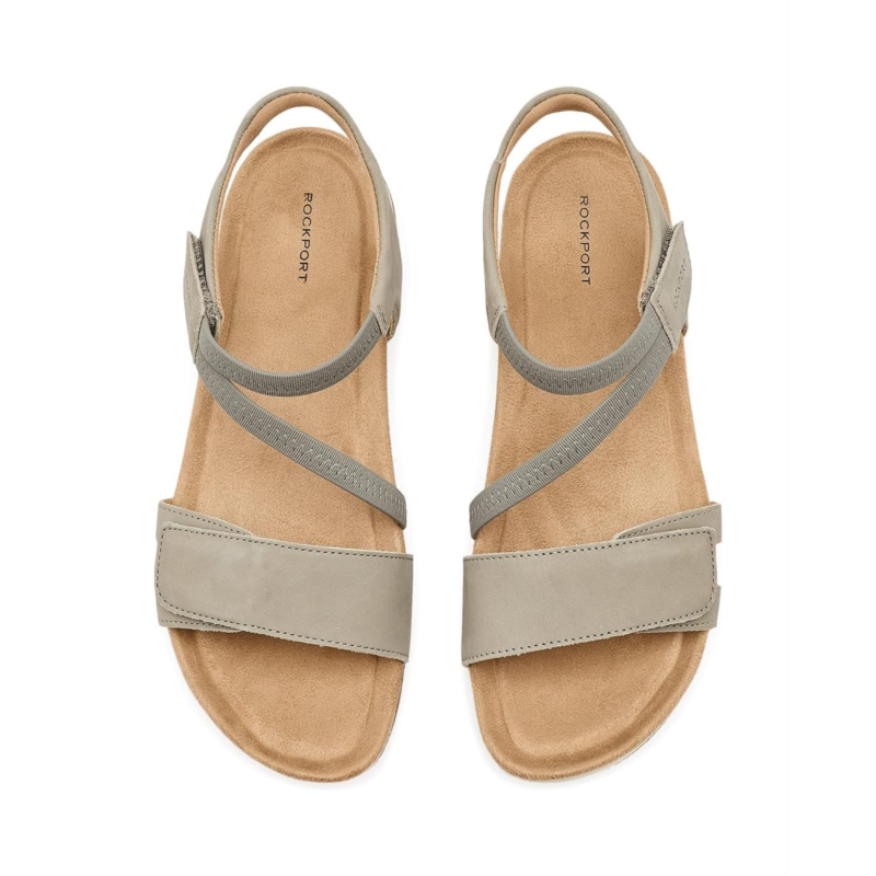 - The Rockport Shevon casual sandal is designed for days that demand both style and ease. Crafted with a smooth leather upper, it brings a refined yet relaxed look that pairs effortlessly with everything in your wardrobe. The asymmetrical, double-adjustable straps add a modern edge while allowing you to customize the fit just the way you like it. With convenient hook-and-loop closures, slipping in and out is quick and fuss-free. Inside, a soft polyester lining and cushioned ethylene vinyl acetate insole work together to keep your feet supported and comfortable all day long. The round toe design offers a natural, roomy feel, while the flexible synthetic rubber outsole provides dependable grip and stability.