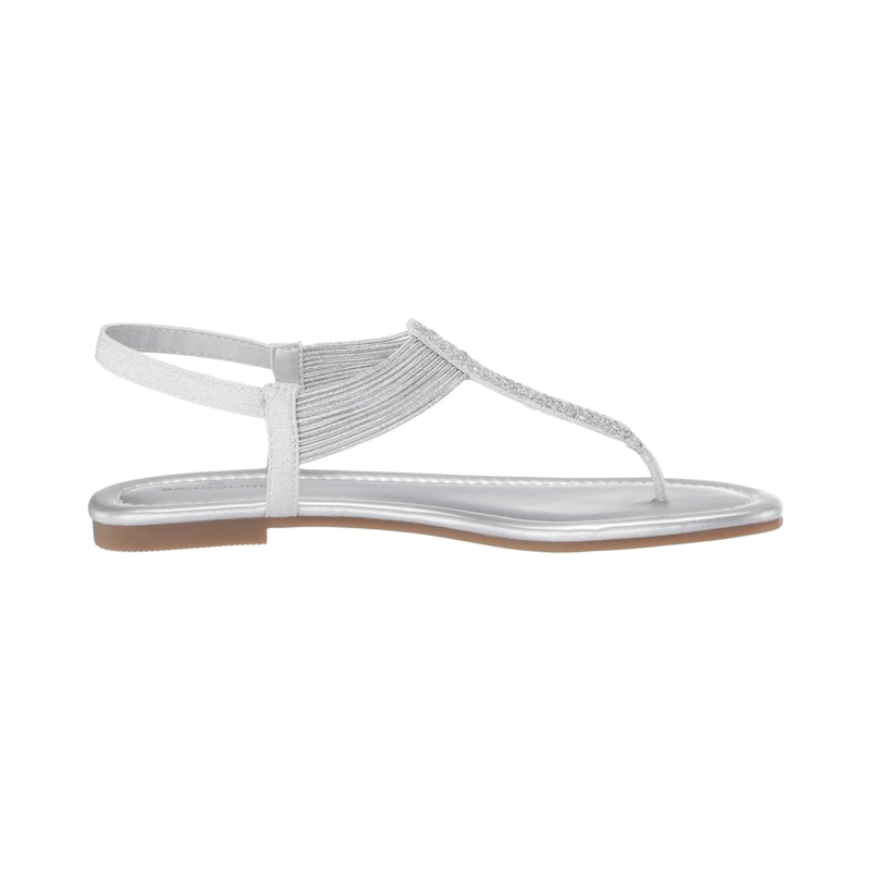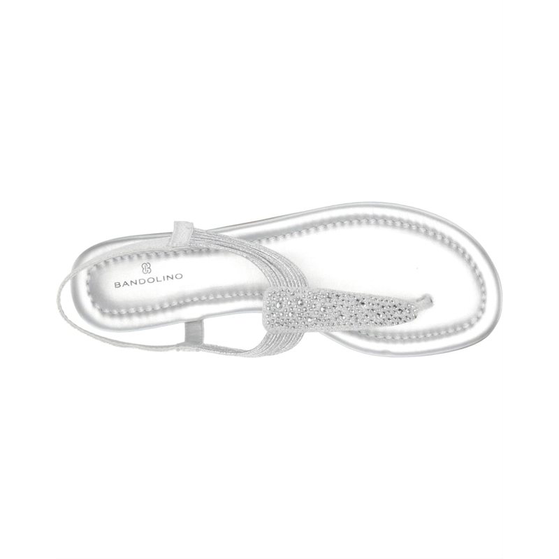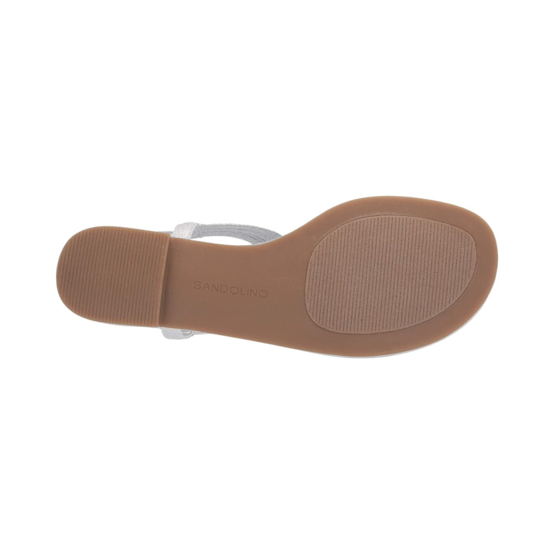 - The Bandolino Kayte Sandal achieves contemporary glam with a metallic finish, mini rhinestone embellishments, and a textile upper.