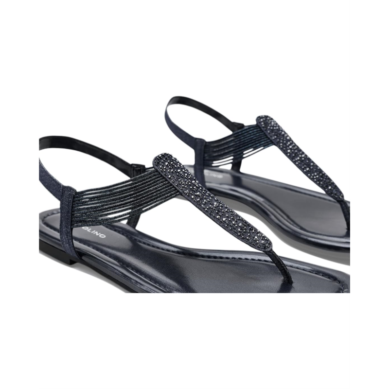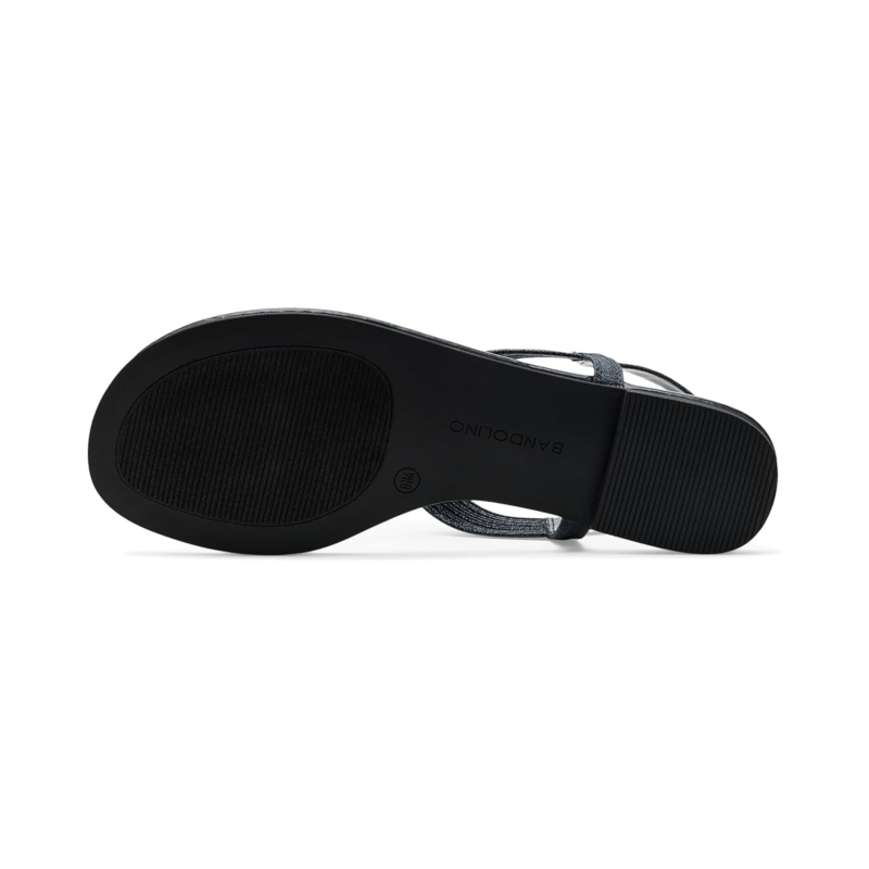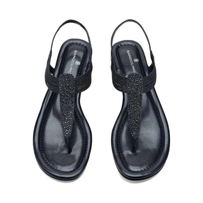 - The Bandolino Kayte Sandal achieves contemporary glam with a metallic finish, mini rhinestone embellishments, and a textile upper.