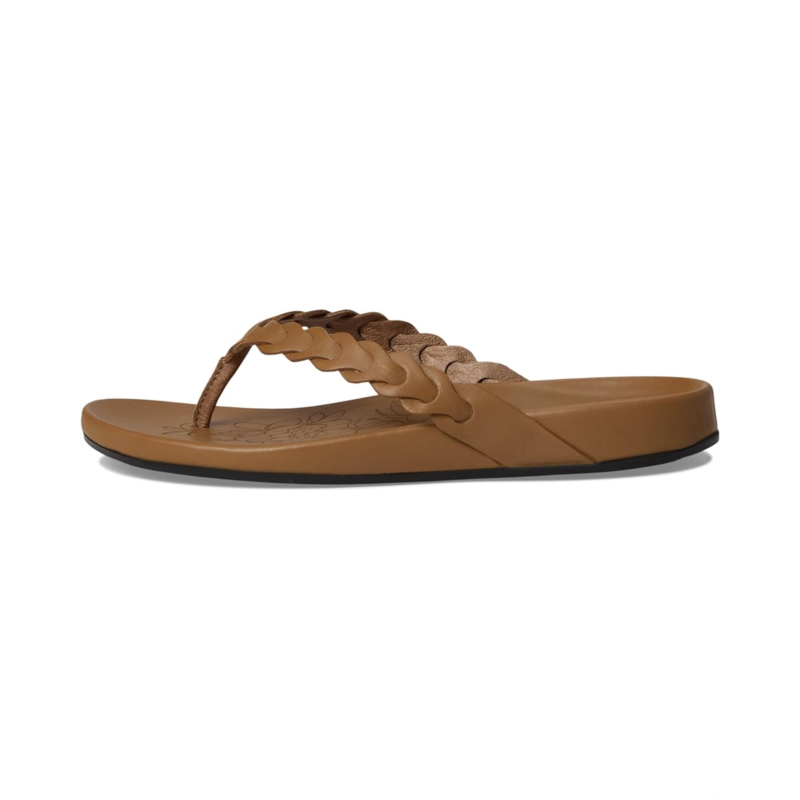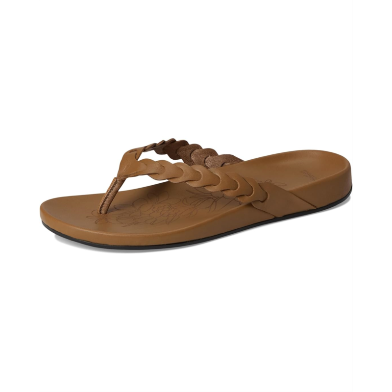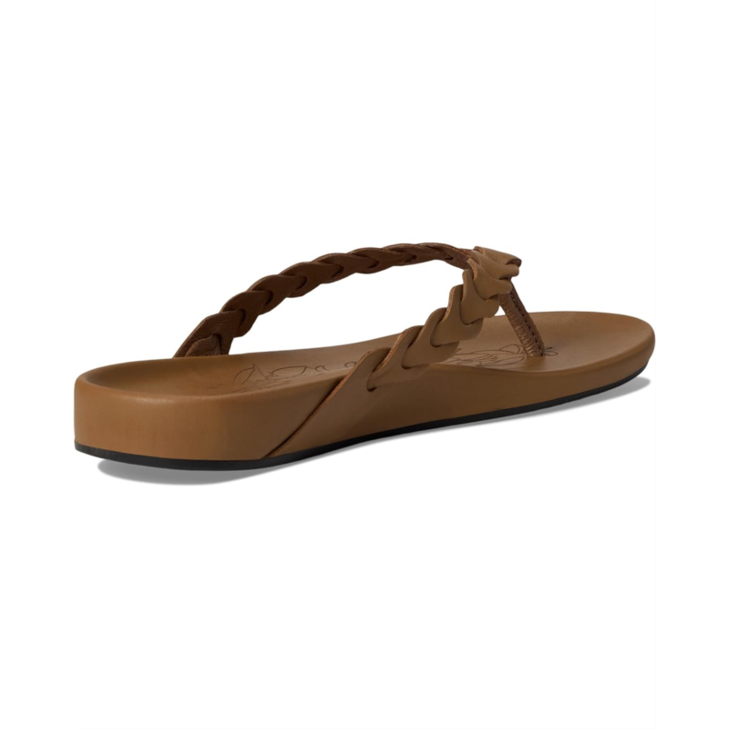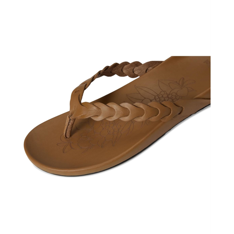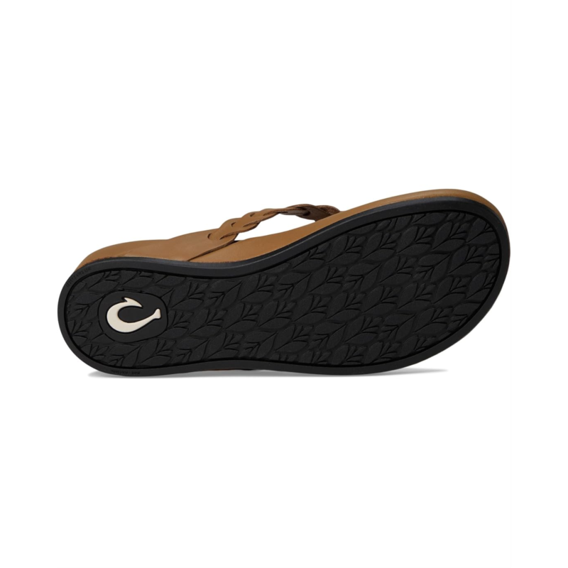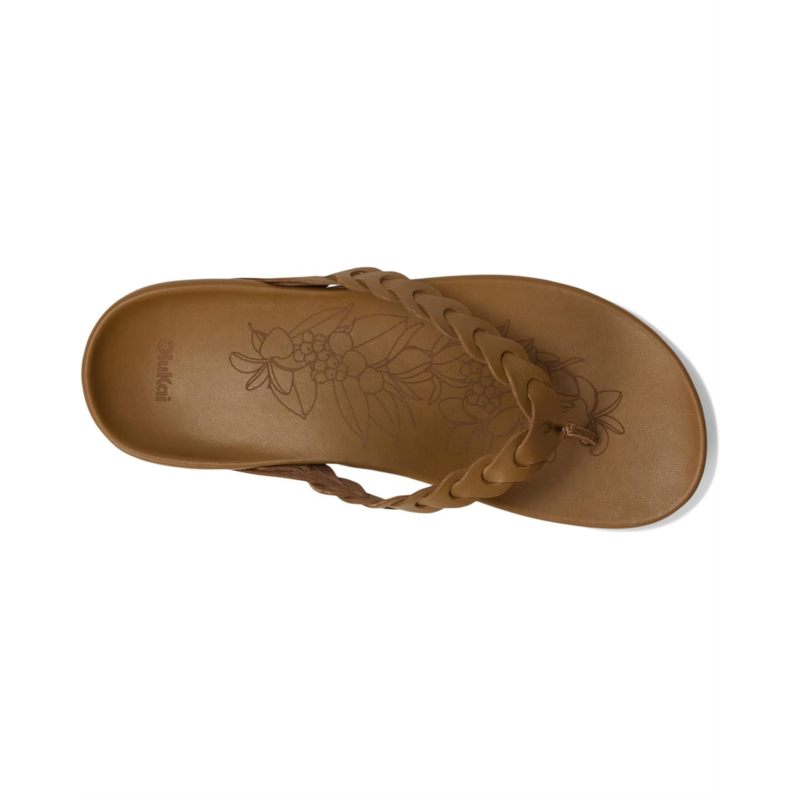 - The OluKai Lei is a premium sandal thats perfect for a day spent with friends-from lunch to afternoon shopping. This leather heritage sandal stands out with its clean, modern design, interlocking leather straps, and lasered embroidery detailing. Featuring round toe, thong style strap, slip-on style, and brand name on the footbed.