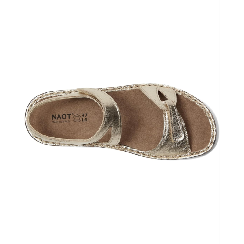 - Introducing Evora- where comfort meets timeless elegance in every step. This flat backstrap sandal features plush padding and secure hook-and-loop closures, ensuring a snug and adjustable fit. Designed for all-day wearability, Evora combines practicality with understated sophistication, making it an essential addition to your wardrobe for any occasion. Crafted with Naots removable, anatomic cork and latex footbed wrapped in pampering suede, these shoes mold to the shape of your foot with wear, ensuring personalized comfort. Plus, its American Podiatric Medical Association (APMA) accepted for promoting good foot health. The patented Naot Replacement Footbeds are also available, ensuring extended comfort and support. The Utopia Collections 1.25 polyurethane sole offers both elegance and support.