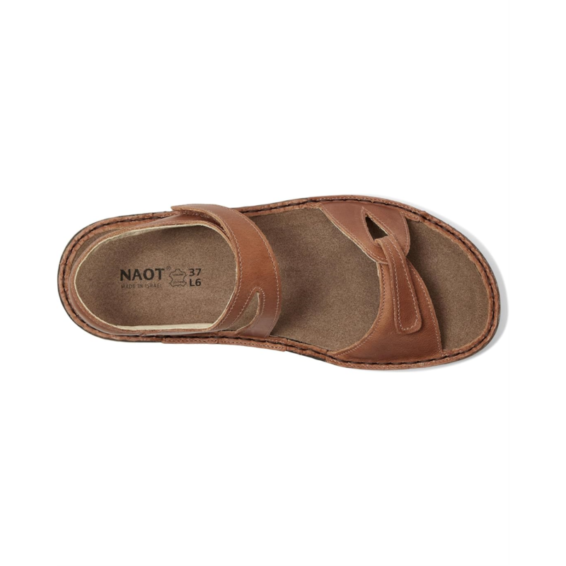 - Introducing Evora- where comfort meets timeless elegance in every step. This flat backstrap sandal features plush padding and secure hook-and-loop closures, ensuring a snug and adjustable fit. Designed for all-day wearability, Evora combines practicality with understated sophistication, making it an essential addition to your wardrobe for any occasion. Crafted with Naots removable, anatomic cork and latex footbed wrapped in pampering suede, these shoes mold to the shape of your foot with wear, ensuring personalized comfort. Plus, its American Podiatric Medical Association (APMA) accepted for promoting good foot health. The patented Naot Replacement Footbeds are also available, ensuring extended comfort and support. The Utopia Collections 1.25 polyurethane sole offers both elegance and support.