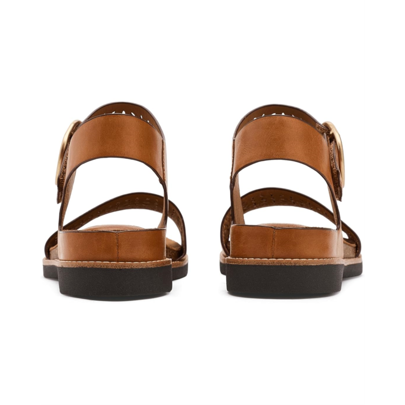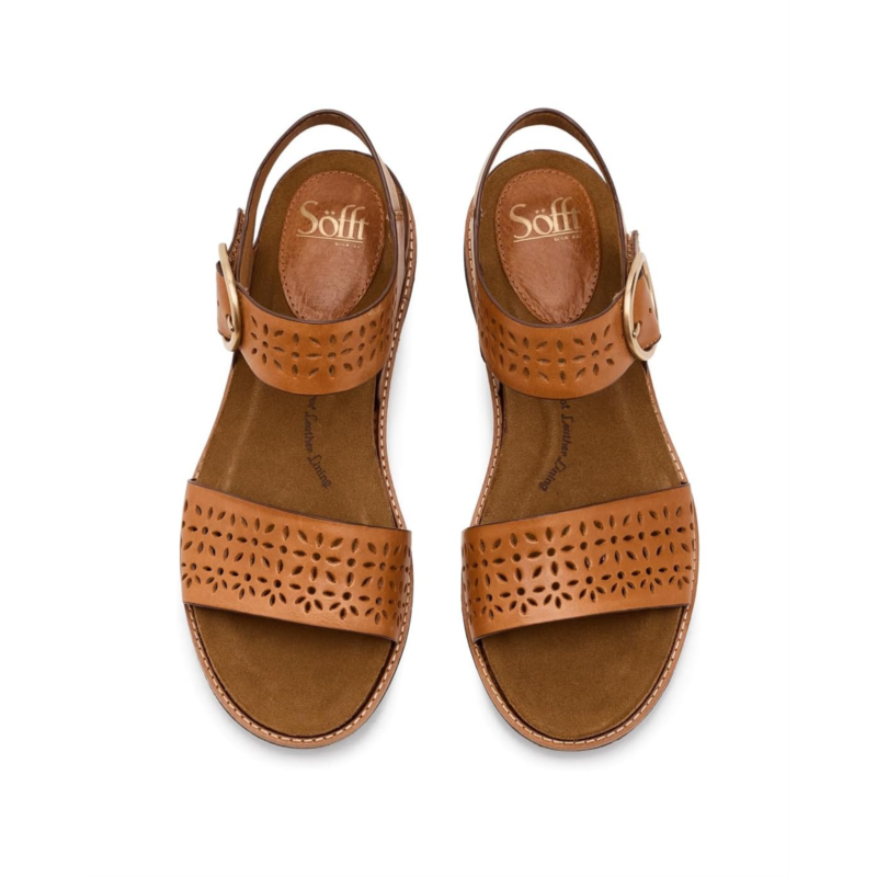 - The Sofft Bali III sandal is designed with laser-cut leather upper straps that add airy texture and visual interest. A buckled strap with hidden hook-and-loop closure ensures a secure yet adjustable fit, while the almond toe silhouette lends a graceful finish.