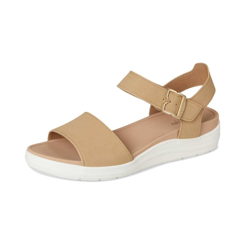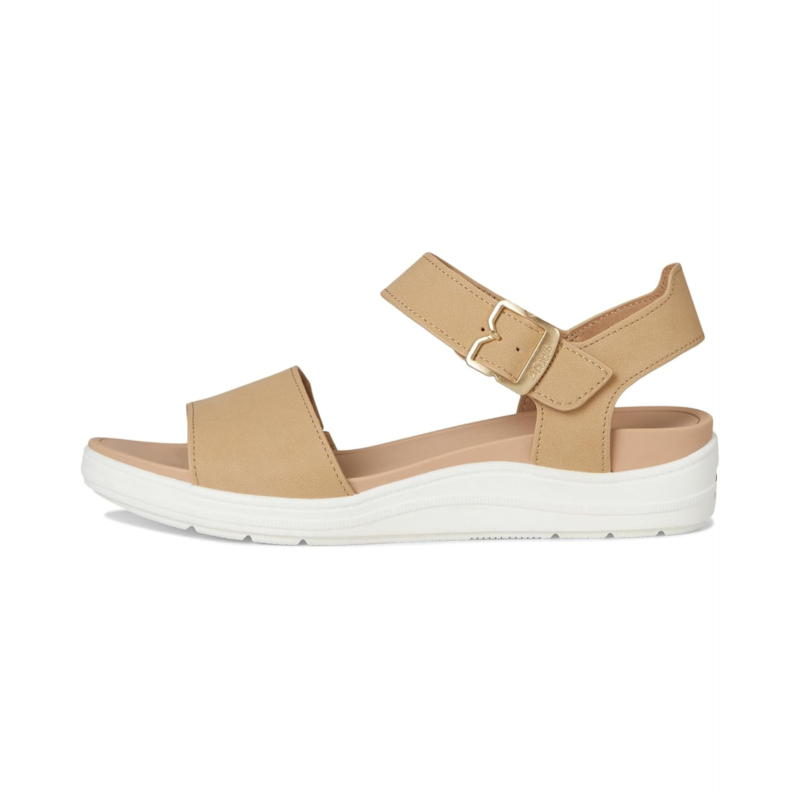- Dr. Scholls Time Off Sky sport sandals for travel and every day inspired by our viral Time Off sneaker. It features canvas fabric vamp with low chemical faux leather straps, low chemical faux leather upper, or metallic upper with molded EVA footbed and TPR outsole. It has an ankle strap with adjustable hook-and-loop closure for easy on and off. Insole Technology with anatomical cushioning, comfort, & arch support. Skys the limit in these womens sandals with sporty feels and all the comfort of the most-wanted Time Off travel sneakers.