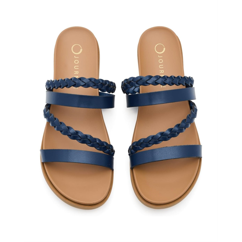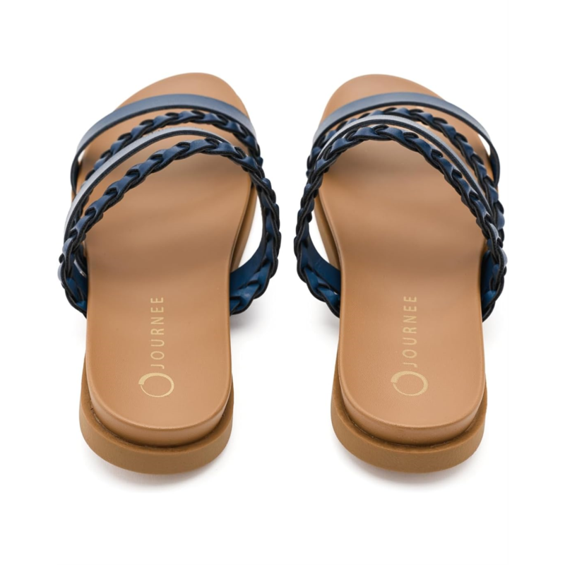- Who wouldnt want the Journee Collection Colette! This adorable sandal is an easy slip-on style that features a flexible outsole. This sandal comes with a braided crossover strap design. Step into a fun summer sandal today! Crafted from PU upper, faux leather lining, and insole, it features open round toe, and brand detailing on the footbed.