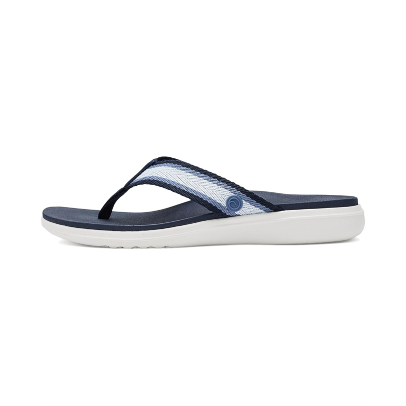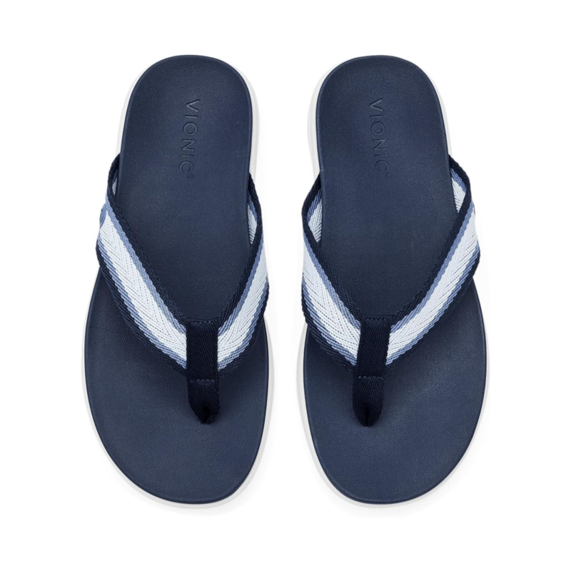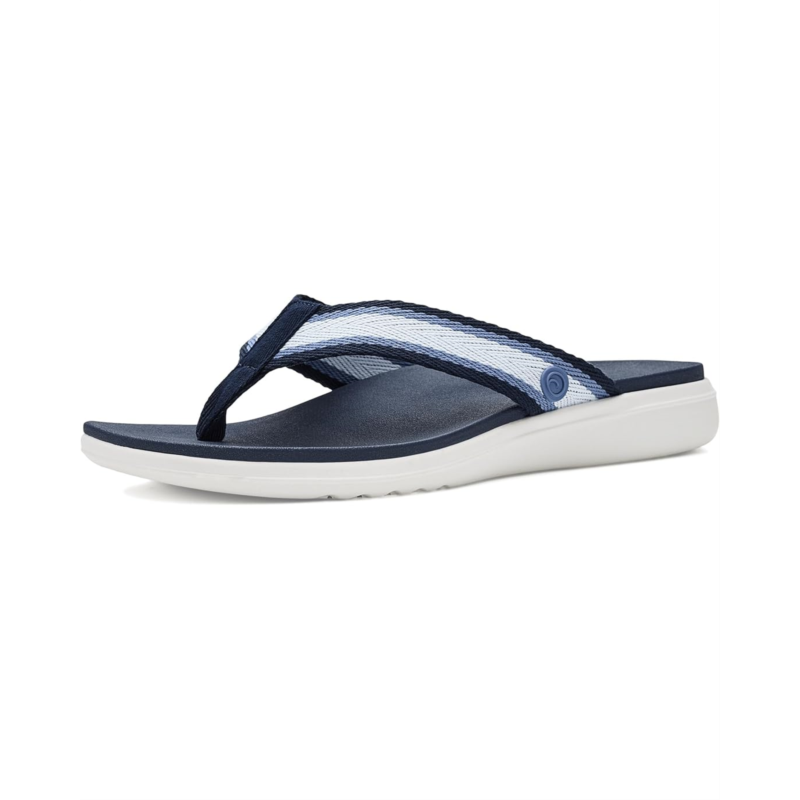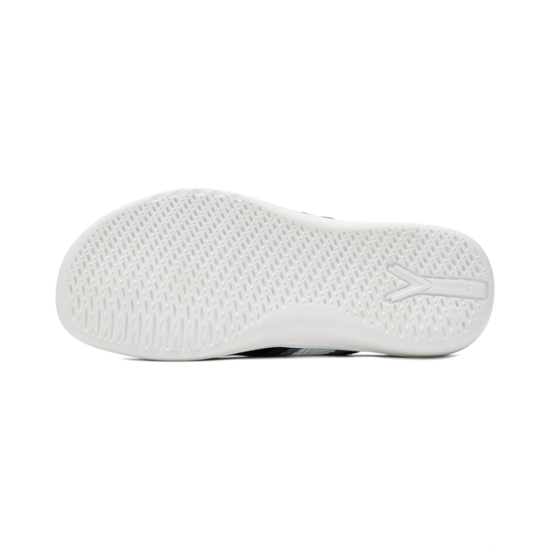 - Designed for those who refuse to compromise on wellness, the VIONIC Indigo toe post sandal delivers essential stability and a relaxed, sun-ready look. Crafted with a durable leather upper and polyurethane lining, this sandal offers a smooth, comfortable feel while maintaining a sleek, casual look. Powered by Vio Motion Technology, it helps support natural alignment and balance, promoting better stability with every step. The lightweight Ethylene Vinyl Acetate insole works with a dual-density sole that combines a soft, cushioned footbed and firmer carrier foam to deliver balanced comfort and reliable support. A synthetic rubber outsole enhances traction and flexibility, making it ideal for everyday wear. Featuring an easy slip-on design with a soft, unlined cotton webbing strap and toe post that moves naturally with your foot.