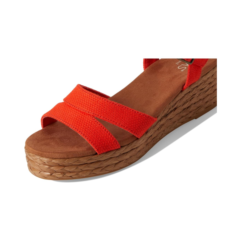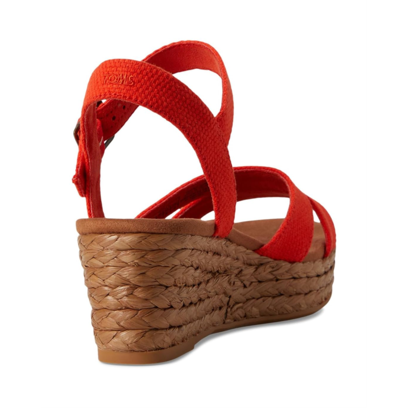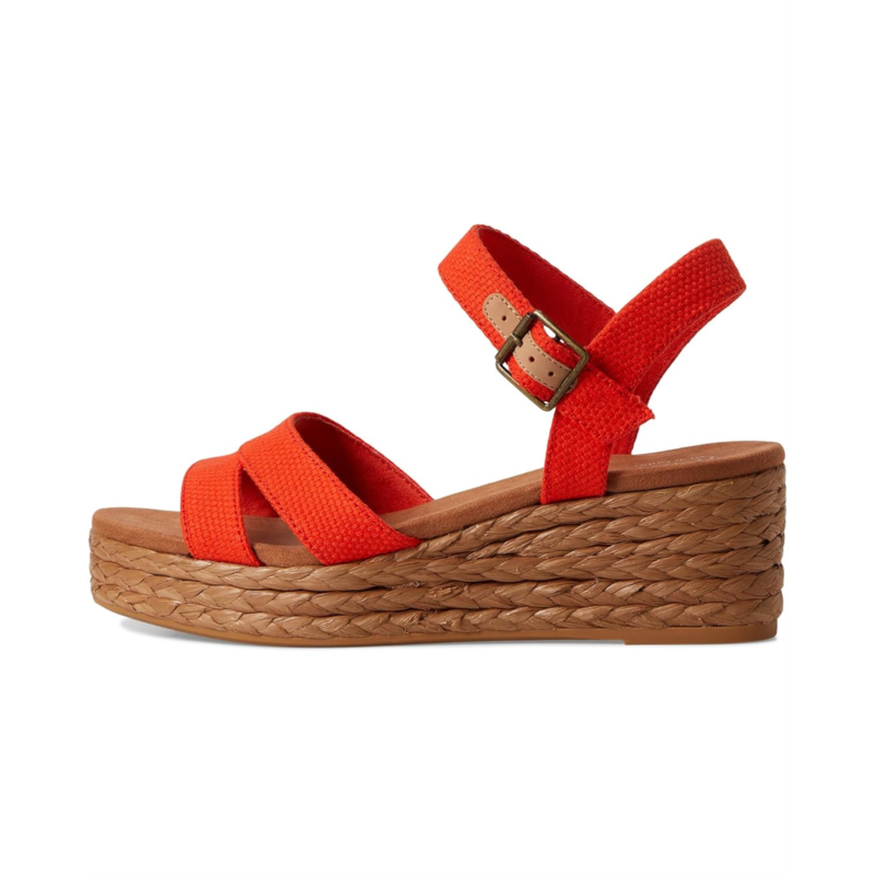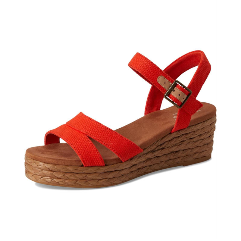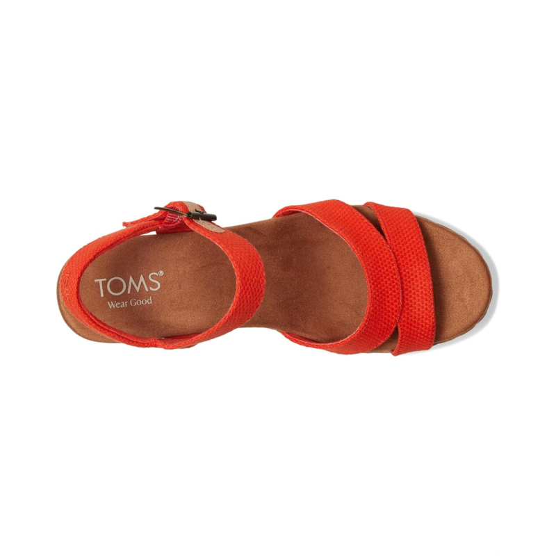 - Walk in style and comfort by wearing the TOMS Audrey sandals. The slip-on style sandals have an open round-toe design, platform wedges, and an ankle strap with an adjustable buckle closure. The rope wrap wedges have textile upper, microfiber High rebound comfort OrthoLite Eco X40 Hybrid insoles, and polyester lining for breathability and comfort. The sandals have jute rope wrap midsole.