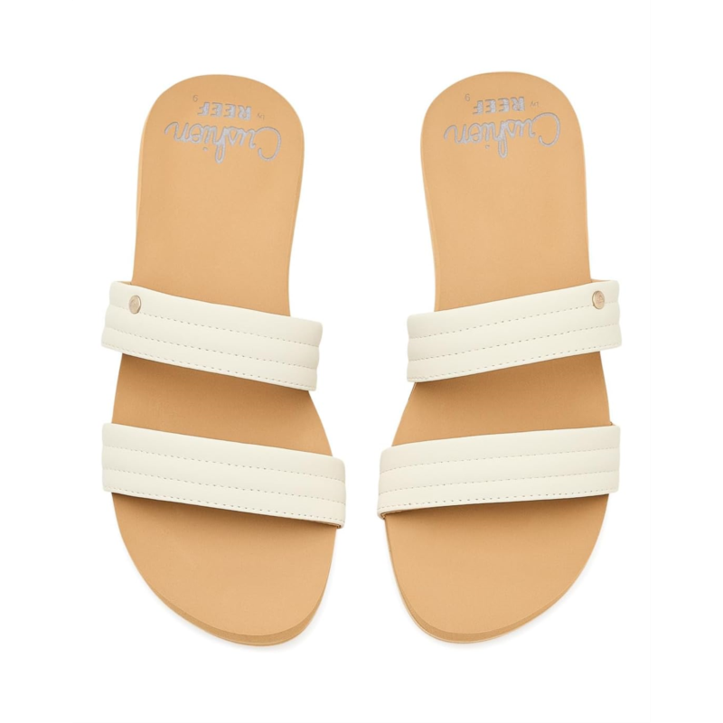 - Strip away the bulk and step into the Reef Cushion Breeze Kya. Crafted with a smooth polyurethane (PU) upper and soft polyester lining, this slip-on silhouette features two quilted, padded straps that hug your feet in laid-back style. The ultra-soft ethylene vinyl acetate (EVA) footbed feels like walking on clouds, while built-in arch support keeps you supported from morning strolls to sunset plans. A flexible rubber outsole with a contoured heel adds stability and reliable traction, so every step feels secure.