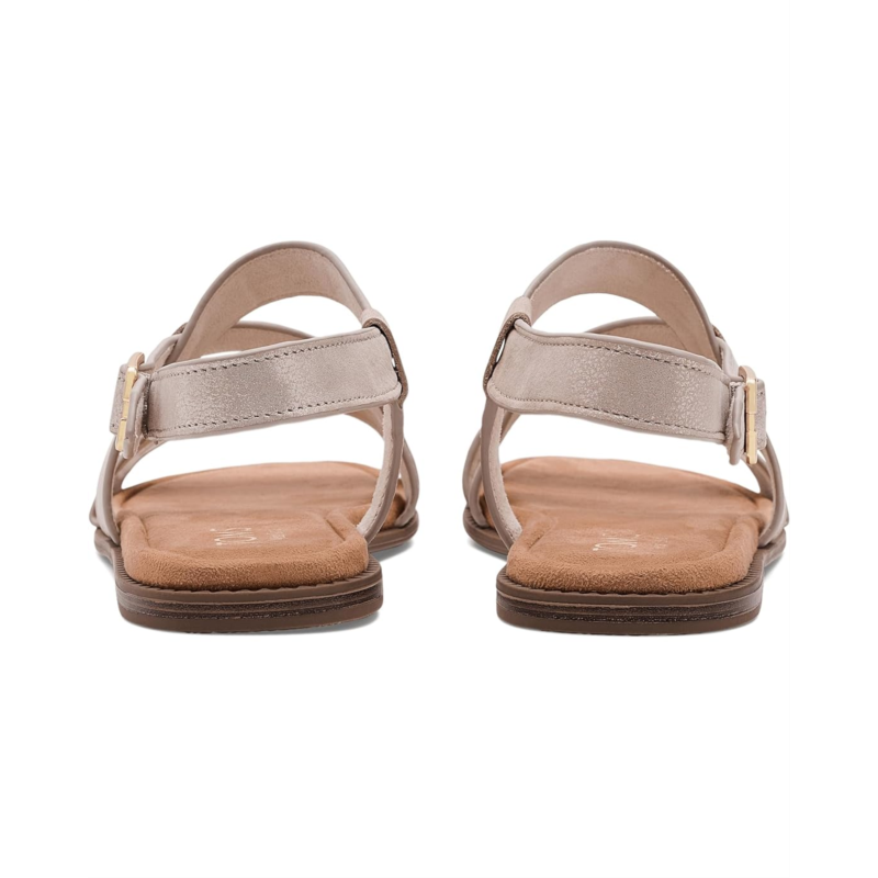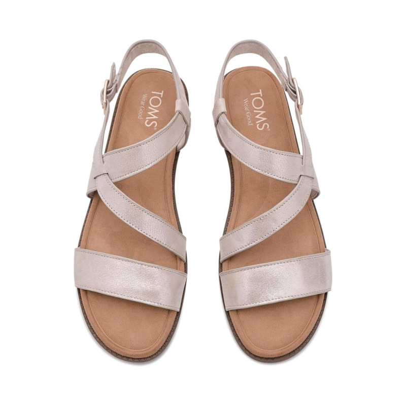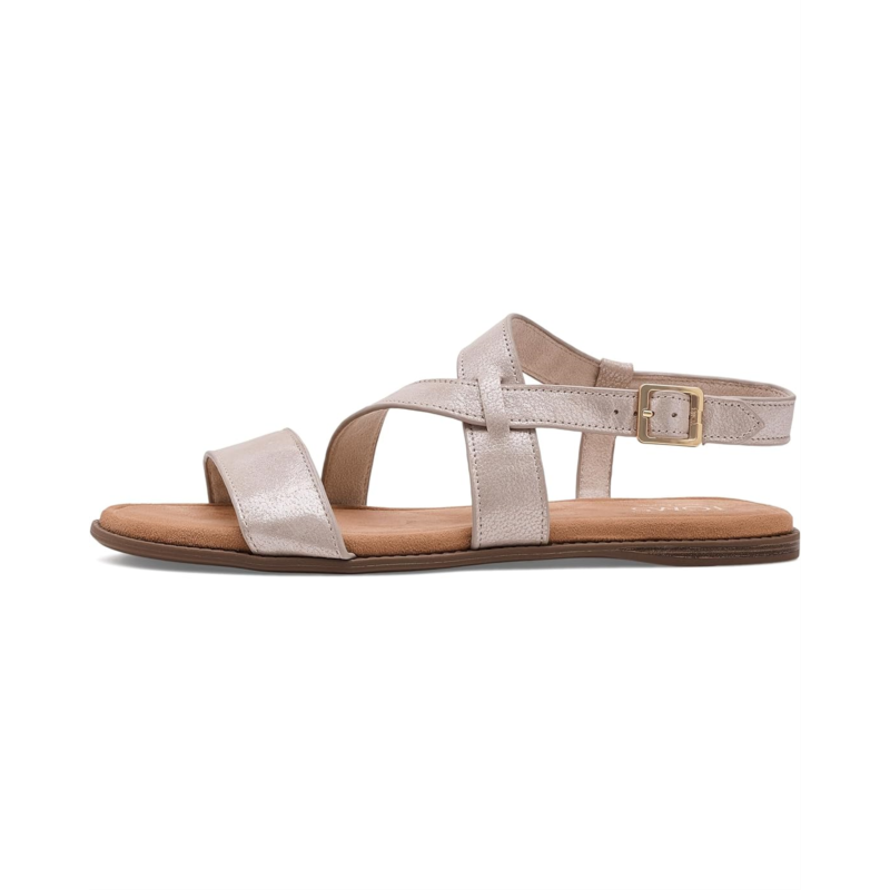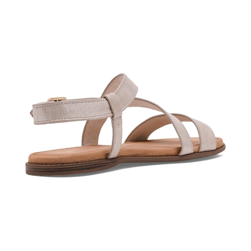 - Refined simplicity for the modern wanderer: TOMS Mar. Crafted with a smooth leather upper and a soft polyester lining and insole, it wraps your feet in breathable comfort from morning errands to evening strolls. The asymmetrical strap detail adds a modern, stylish twist, while the adjustable buckle closure ensures a secure, personalized fit every time. Built with a durable thermoplastic rubber (TPR) outsole, this pair offers reliable traction and flexibility wherever you go. The faux leather wrap mini wedge subtly lifts your round-toe style without compromising on comfort. Plus, the Custom CloudBound deboss foam insoles with arch support deliver cushioned, all-day wear that feels as good as it looks.