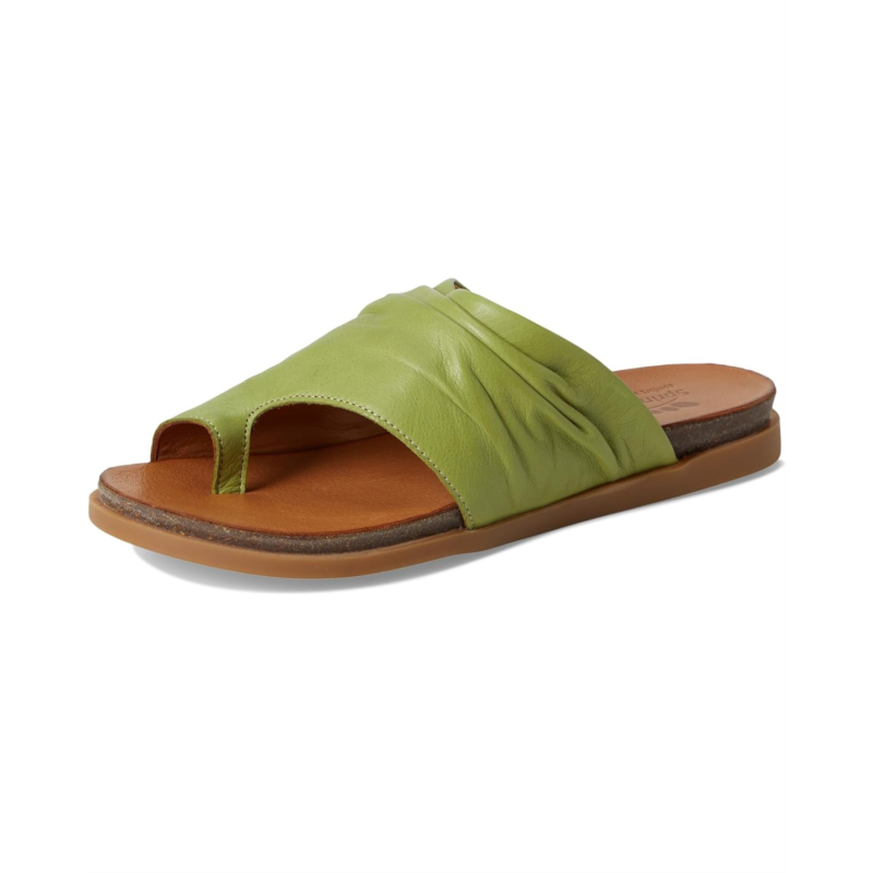 - Elevate your comfort wearing the artistic design Spring Step Bates. Crafted from leather upper, lining, and insole, this pair of sandals features gathered leather upper that adds a distinctive touch of luxury, delicate toe ring detail offers a stylish and secure fit, slip-on style, and brand detailing on the footbed, and low heel.