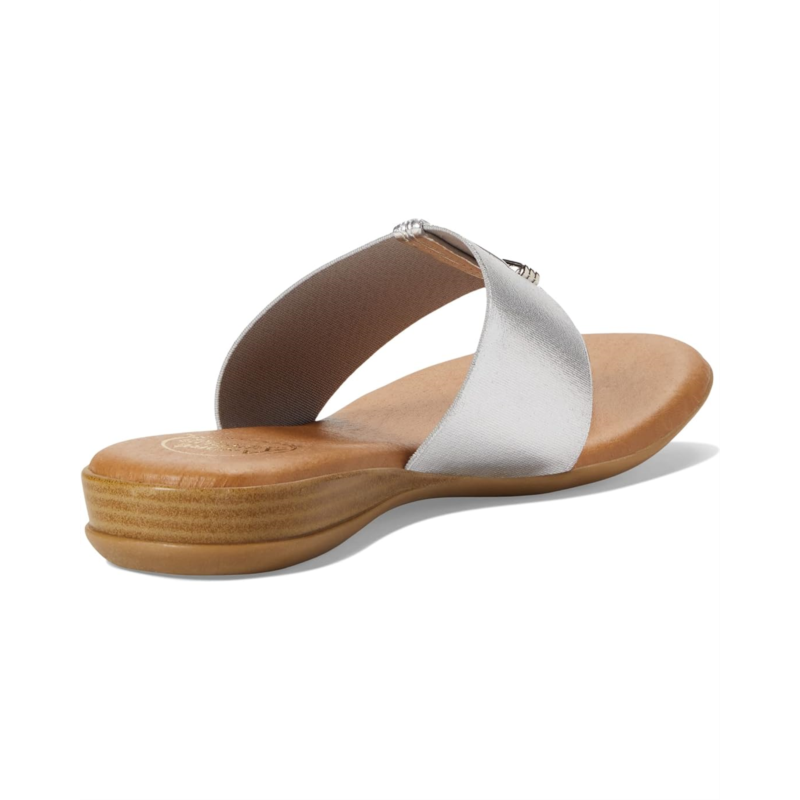- The Andre Assous Nice sandal will simplify any chic ensemble with a wide upper strap, leather detailing strap along the center vamp, and a stacked wedge inset at the heel.