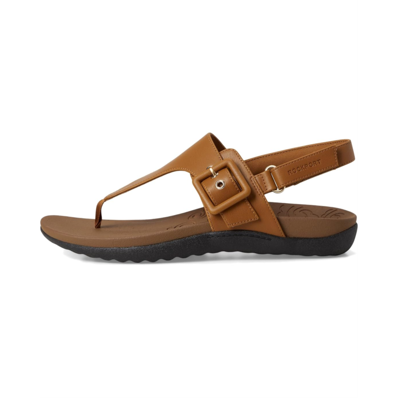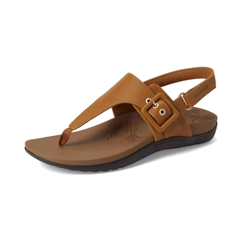 - Simplicity and comfort blend together to bring you the Rora casual sandals from Rockport. These sandals feature a slingback strap and an open, round toe design. Their cushioned EVA footbed and durable synthetic rubber outsole provide all-day comfort. The faux leather upper is styled with buckle and hook-and-loop straps for a secure fit, while the cushioned arch support ensures a comfortable walking experience.