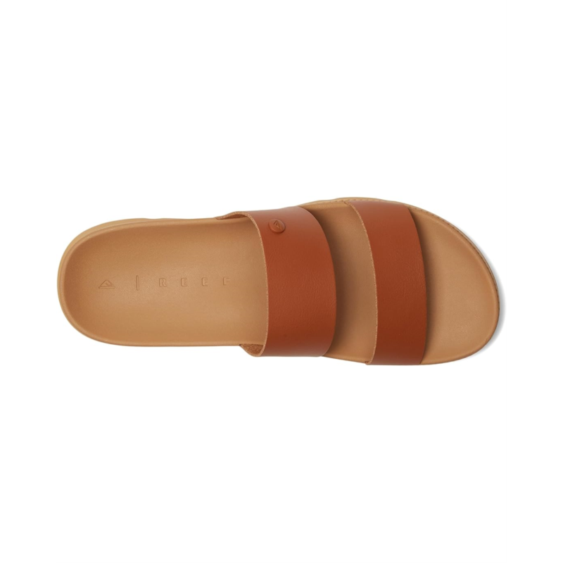 - The ultimate choice for seamless style and enduring comfort, Reef Vista Luxe Thea. Crafted with a soft vegan leather two-strap upper, this slip-on sandal brings fashion-forward flair to your everyday look. The contoured VISTA PU footbed and cushioned EVA midsole cradle your feet in plush support, while the color-blocked sidewall adds a modern, eye-catching twist. Whether youre brunch-bound or beachside, the lightweight EVA outsole with lug texture ensures reliable traction from sunrise to sunset. Easy to slide into, hard to take off, Thea is your daily dose of elevated comfort.